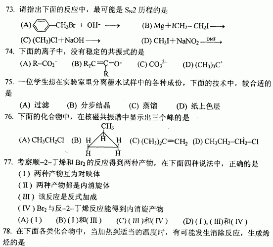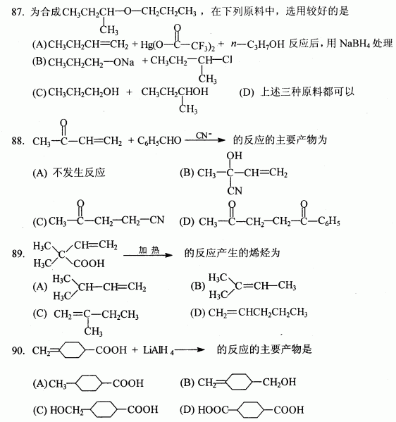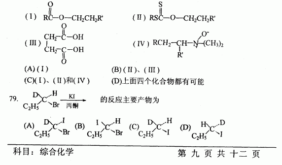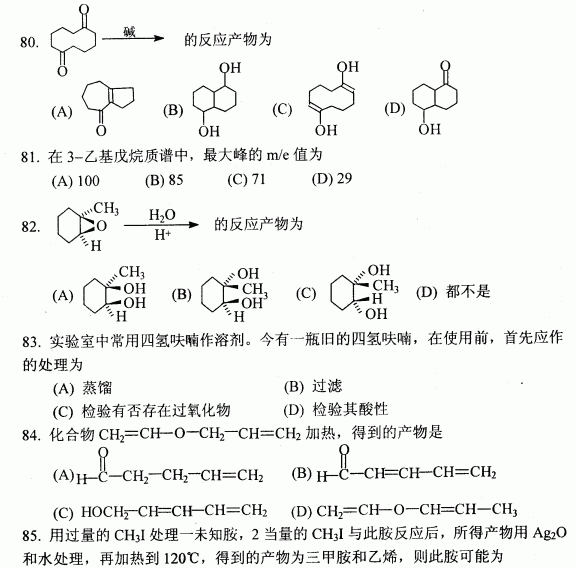 中国科学技术大学2000年考研真题-综合化学第二部分