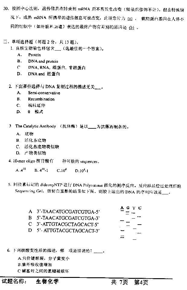 专业课考研经验 本站小编 FreeKaoyan 2018-01-22中国科学技术大学2000年考研真题-综合化学第一部分