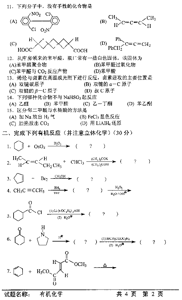 专业课考研经验 本站小编 FreeKaoyan 2018-01-22中国科学技术大学2000年考研真题-综合化学第二部分