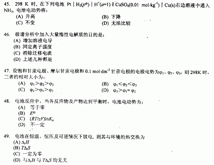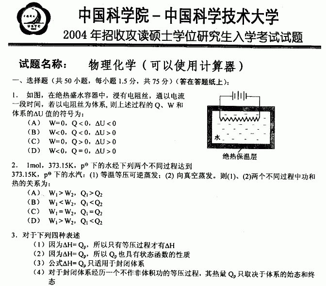 专业课考研经验 本站小编 FreeKaoyan 2018-01-22中国科学技术大学2000年考研真题-综合化学第一部分