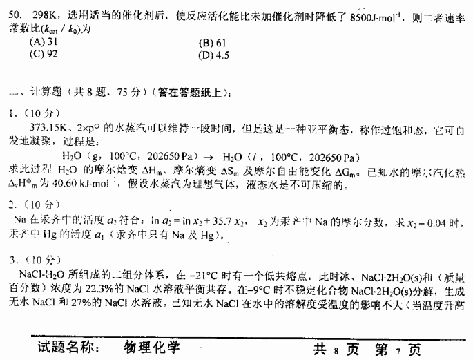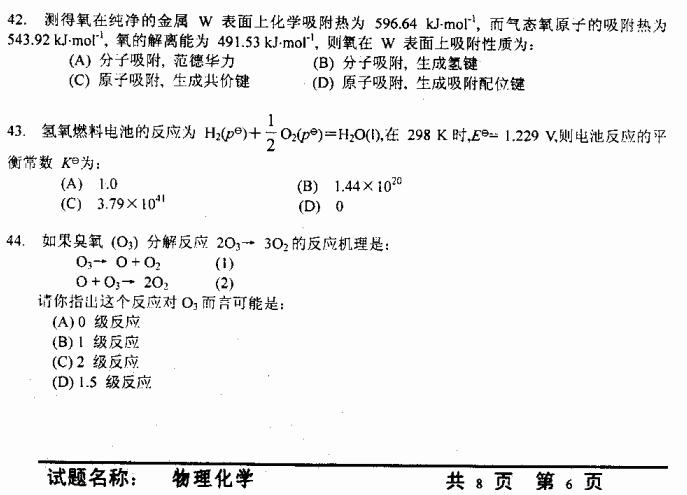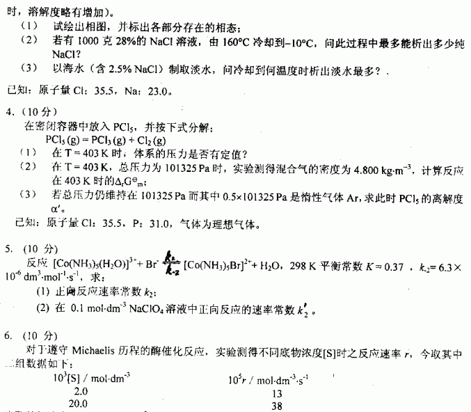 专业课考研经验 本站小编 FreeKaoyan 2018-01-22中国科学技术大学2000年考研真题-综合化学第二部分