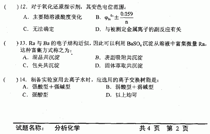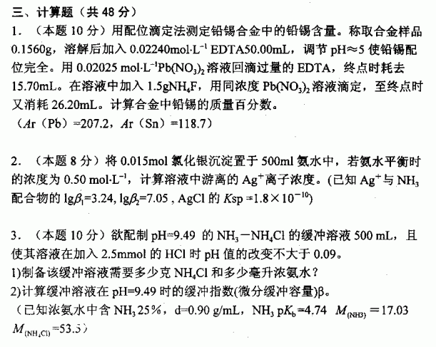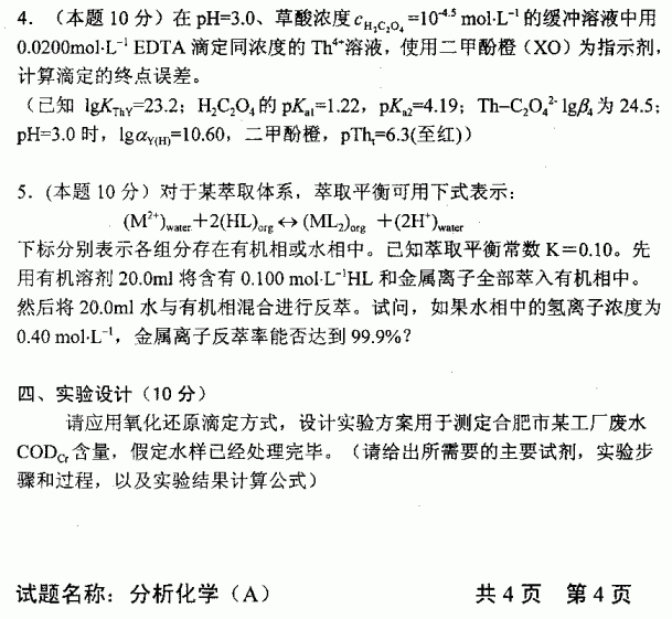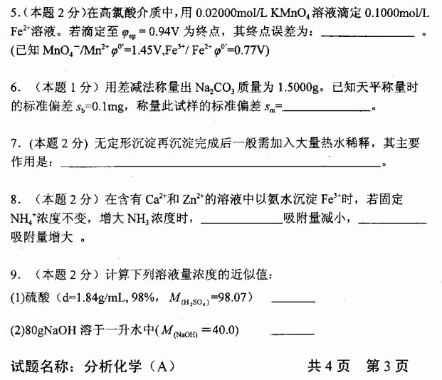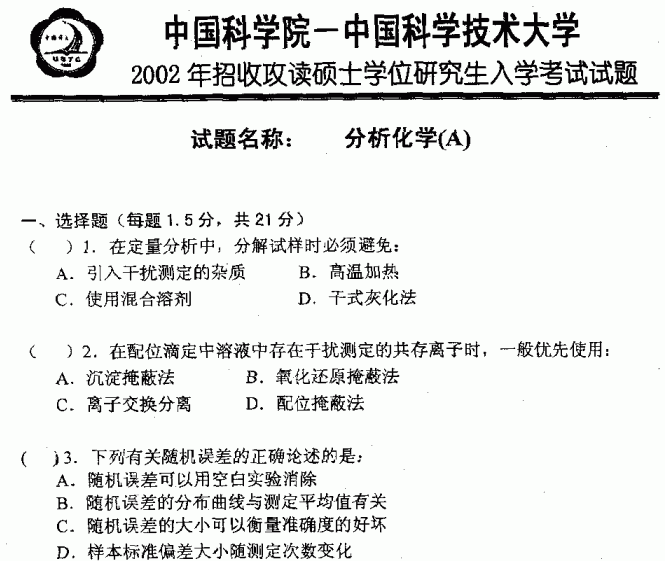 中国科学技术大学2002年考研真题-分析化学A