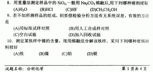 中国科学技术大学2001年考研真题-分析化学A
