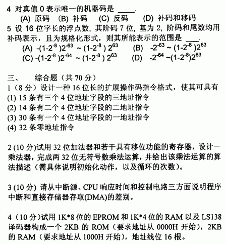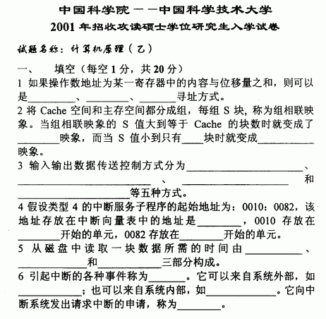 中国科学技术大学2001年考研真题-计算机原理(乙)