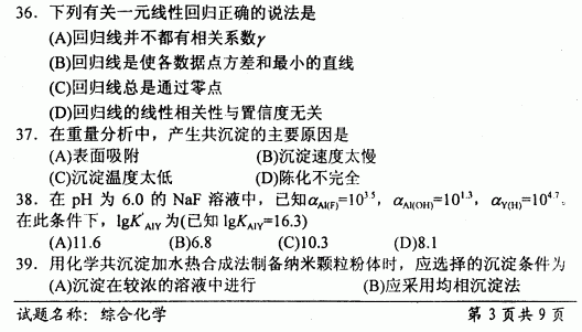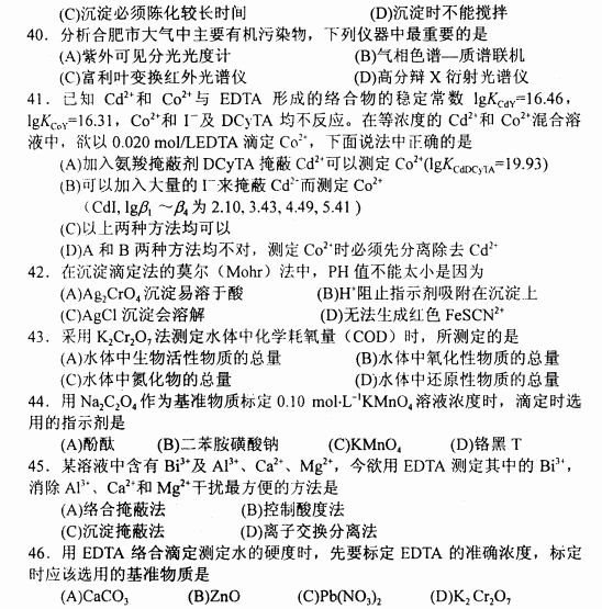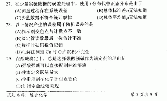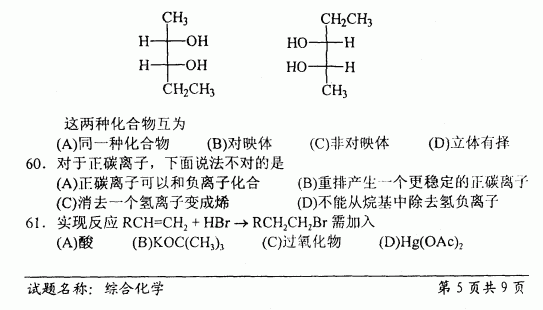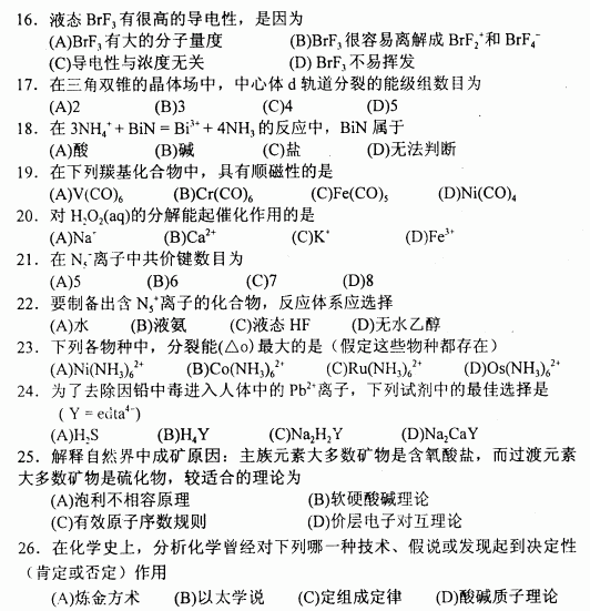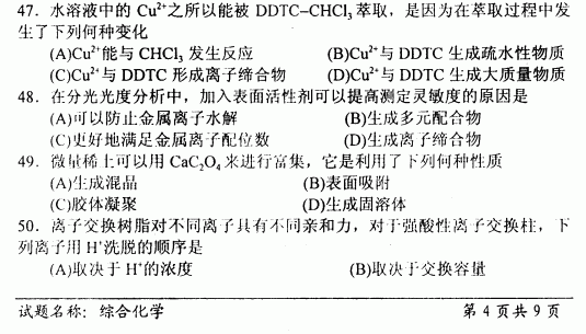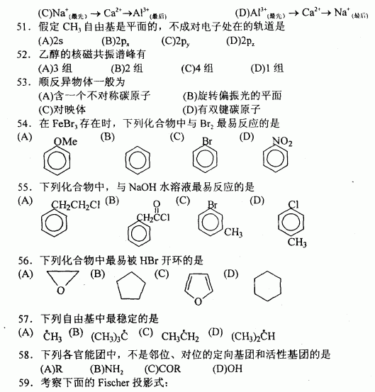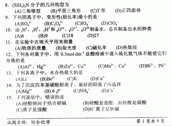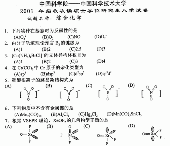中国科学技术大学2001年考研真题-综合化学第一部分