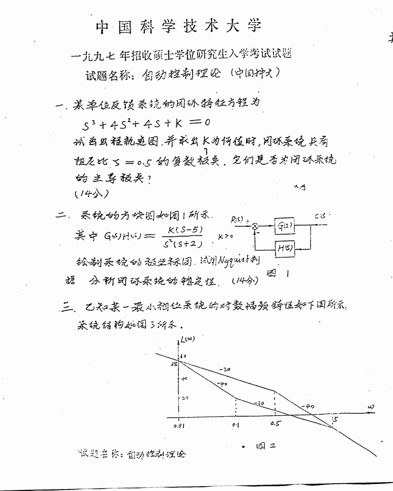 相关话题/中国科学技术大学 考研真题 自动控制理论