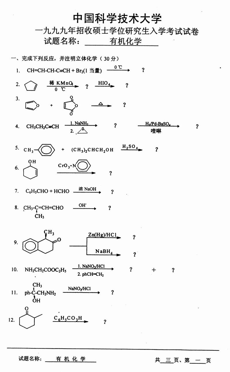专业课考研经验 本站小编 FreeKaoyan 2018-01-22中国科学技术大学1999年考研真题-无机化学
