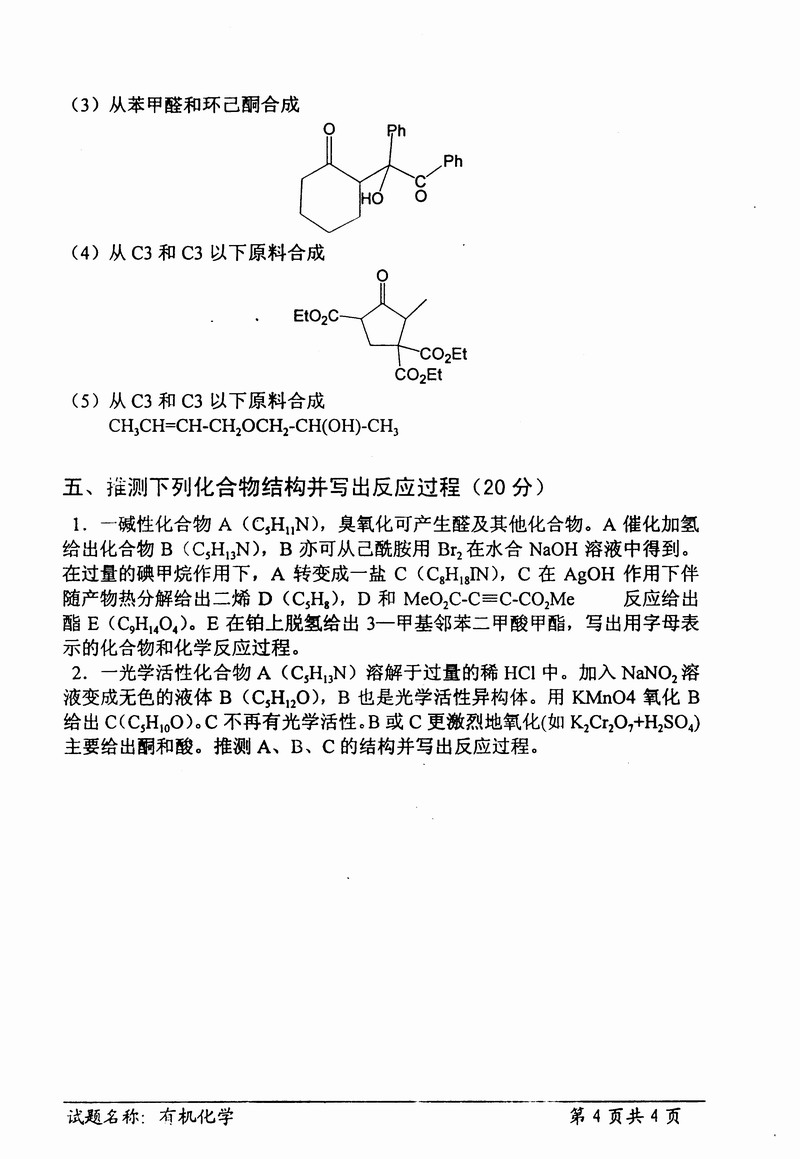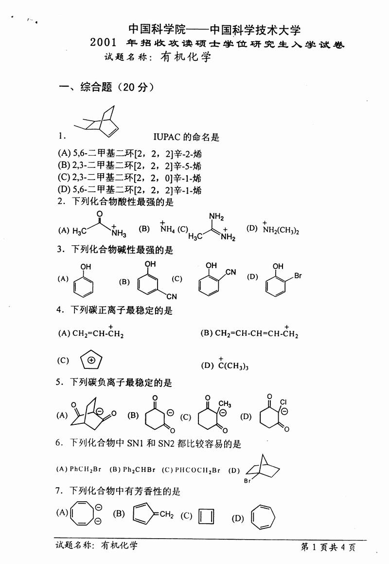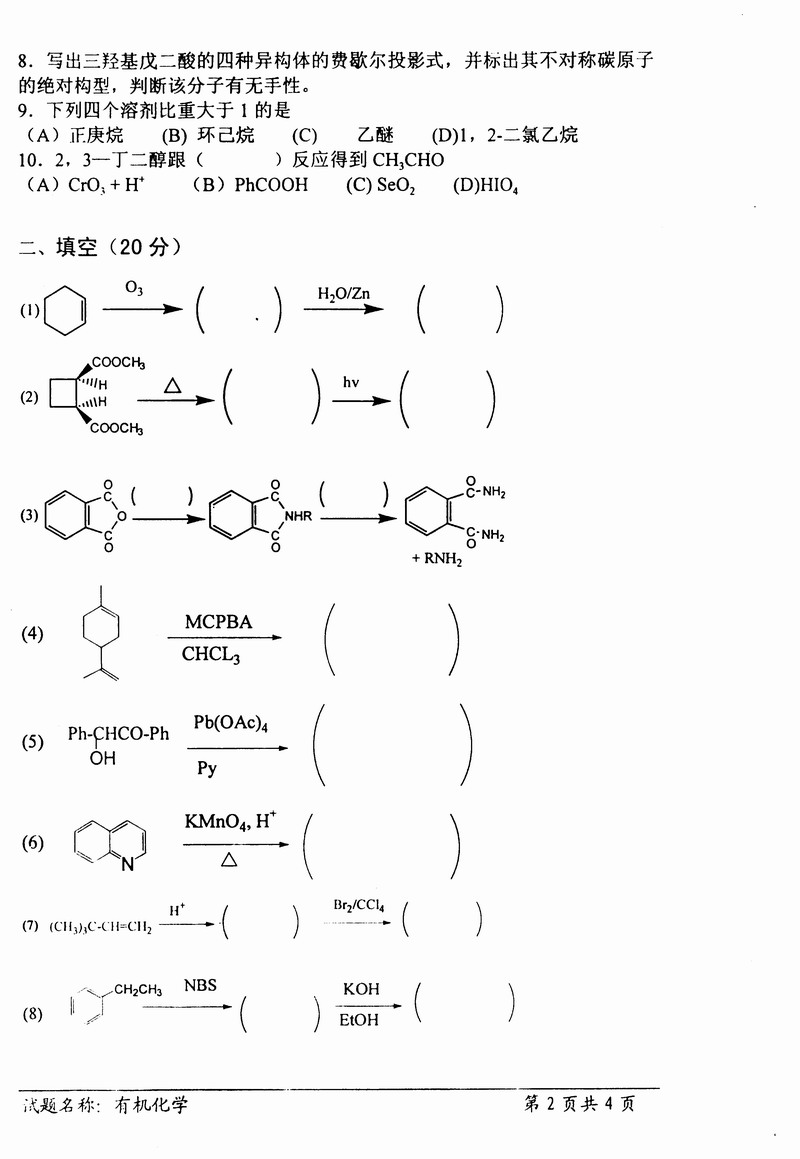 专业课考研经验 本站小编 FreeKaoyan 2018-01-22中国科学技术大学2000年考研真题-有机化学