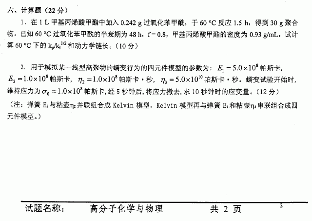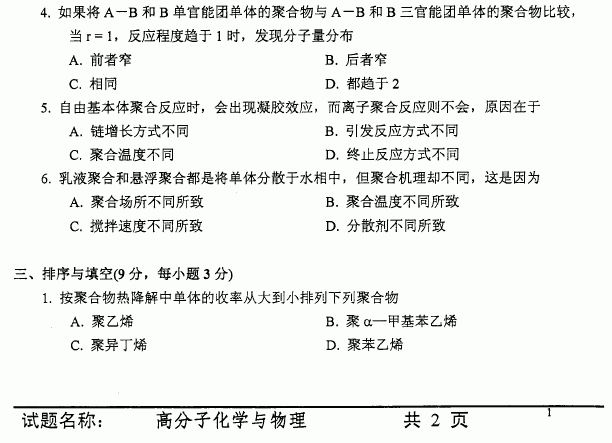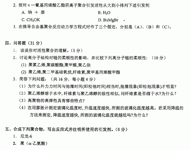 相关话题/中国科学技术大学 考研真题 高分子化学与物理