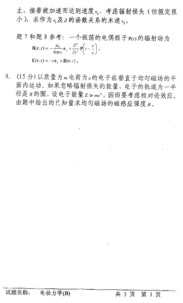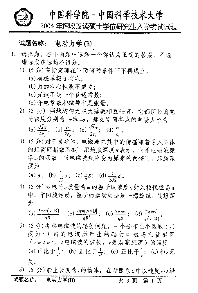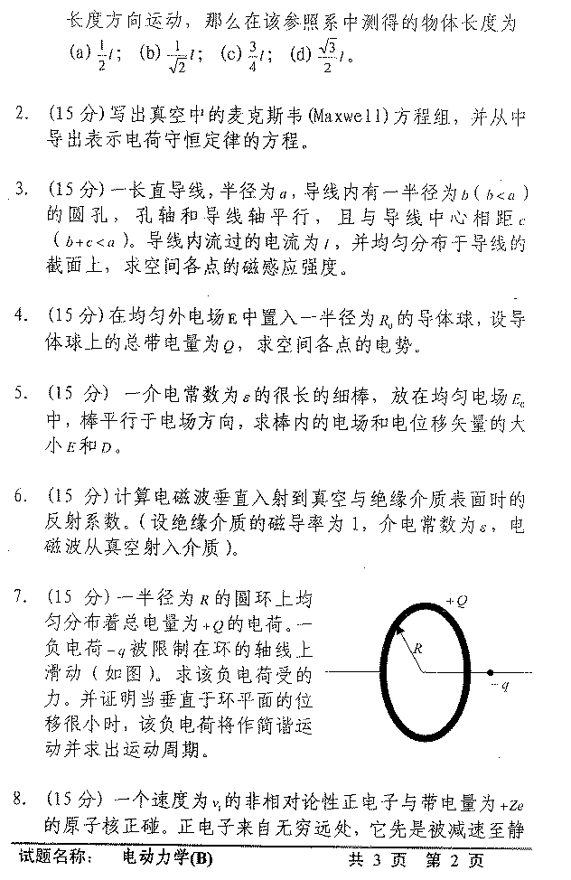 专业课考研经验 本站小编 FreeKaoyan 2018-01-22中国科学技术大学2001年考研真题-电动力学