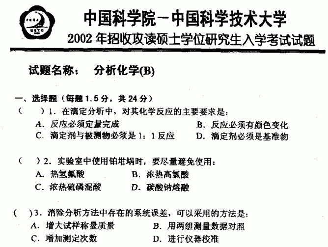 专业课考研经验 本站小编 FreeKaoyan 2018-01-22中国科学技术大学2002年考研真题-物理化学