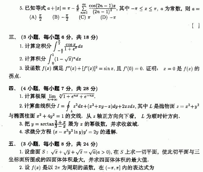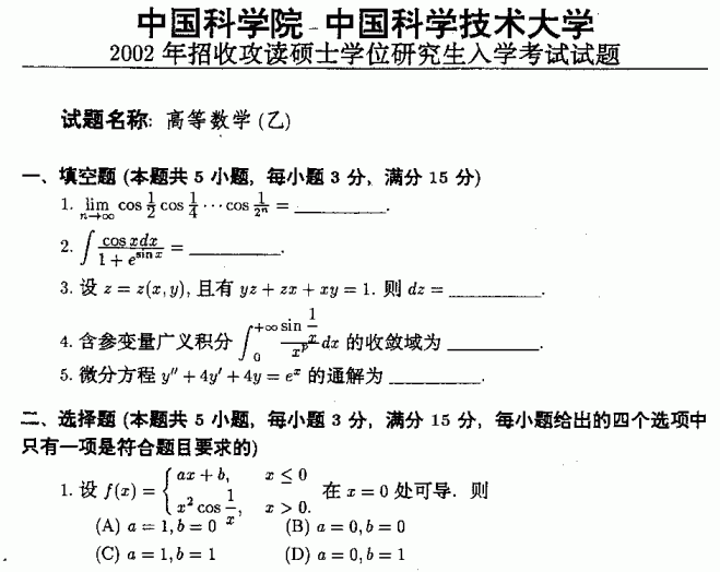 中国科学院--中国科学技术大学2000年招收攻读硕士学位研究生入学考试试卷科目: 线性代数与解析几何注: < >表示下标, 上下连续的(或{表示同一个大(或{.一、填空(每空4分, 共48分)设R^3中向量(-1 ) ( 1 ) ( 1 )α<1>= ( 1 ), α<2>= (-1 ), α<3> ...专业课考研经验 本站小编 FreeKaoyan 2018-01-22中国科学技术大学2001年考研真题-固体物理