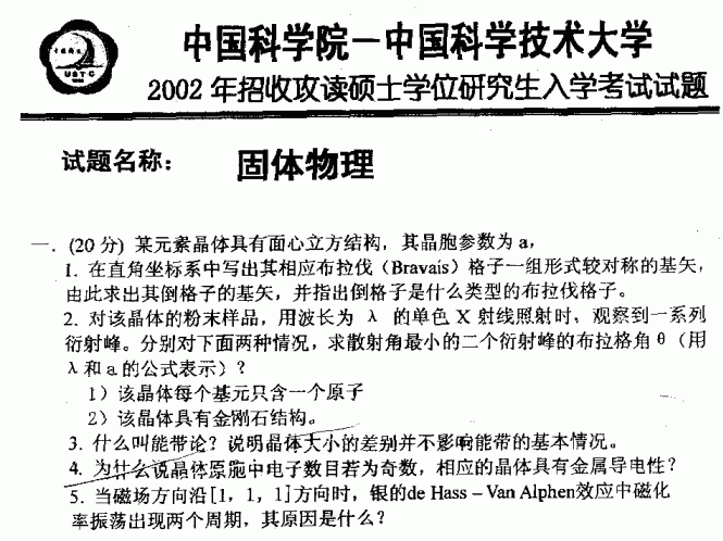 中国科学技术大学2002年考研真题-固体物理