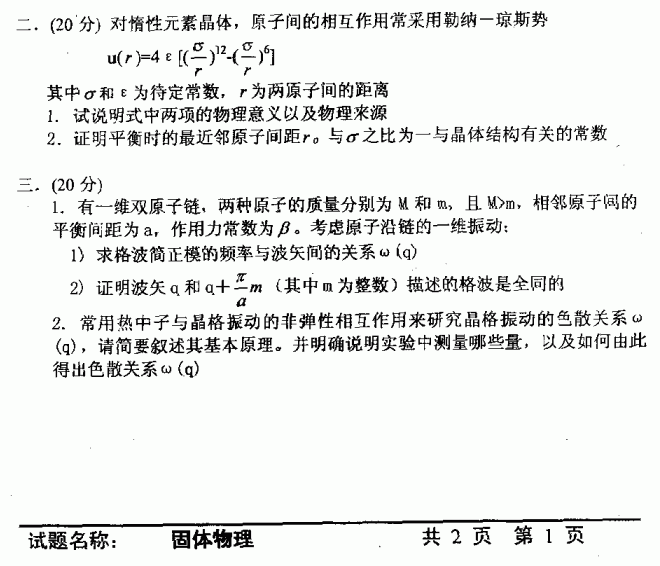 相关话题/中国科学技术大学 考研真题 固体物理