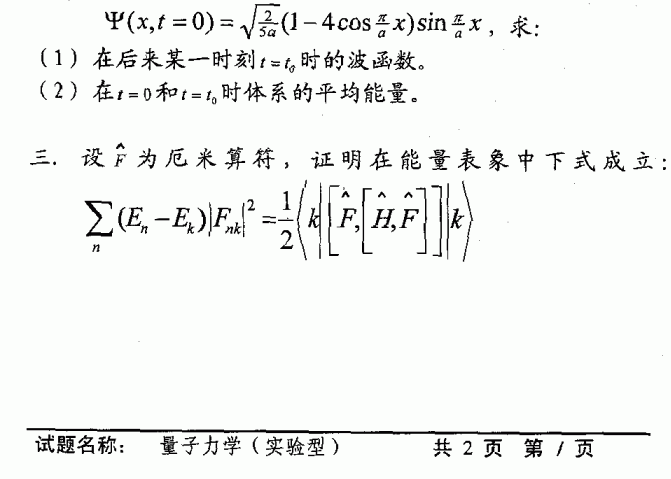 相关话题/考研真题 中国科学技术大学 实验 量子力学