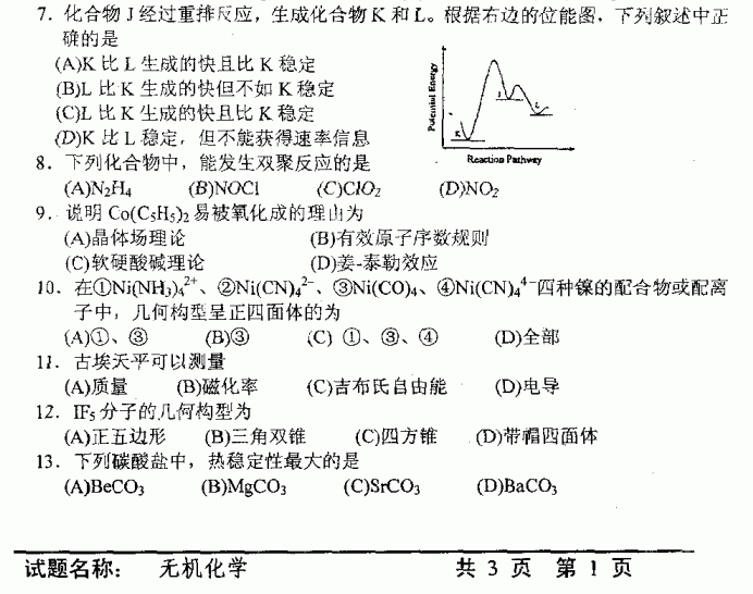 专业课考研经验 本站小编 FreeKaoyan 2018-01-22中国科学技术大学2001年考研真题-有机化学