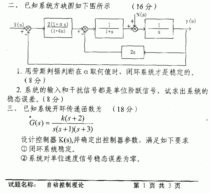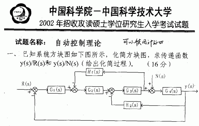 相关话题/中国科学技术大学 考研真题 自动控制理论