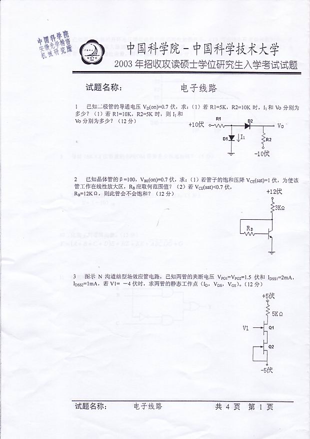 专业课考研经验 本站小编 FreeKaoyan 2018-01-22一、( 10 分) 设质量为 m 的粒子在一维无限深势阱中运动 试用 de Broglie 的驻波条件,求粒子能量的可能取值。 二、( 10 分) 设一个质量为 m 的粒子束沿正 x 方向以能量 E 向 x=0 处的势垒运动 试用量子力学的观点回答:在 x=0 处被反射的反射系数是多少? 三、( 2 ...