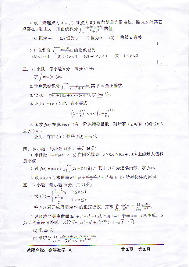 科目: 线性代数注: < >表示下标, 上下连续的(或{表示同一个大(或{.1.(10分)设平面pi:Ax+By+Cz+D=0与连接两点M1(x1,y1,z1)和M2(x2,y2,z2)的线段相交于点M,→ →且M1M=kMM2.证明:k=-(Ax1+By1+Cz1+D)/(Ax2+By2+Cz2+ ...