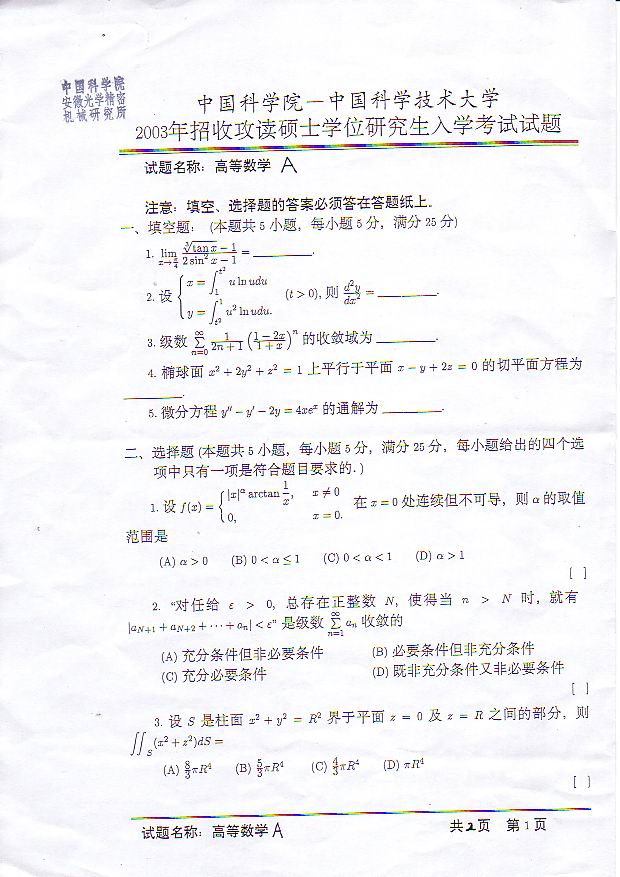 专业课考研经验 本站小编 FreeKaoyan 2018-01-22科目: 线性代数与解析几何注: < >表示下标, 上下连续的(或{表示同一个大(或{.一、填空(每空4分, 共48分)设R^3中向量(-1 ) ( 1 ) ( 1 )α<1>= ( 1 ), α<2>= (-1 ), α<3>= ( 0 )( 1 ) ( 0 ) (-1 )(-4 ) ( 4 ) ( ...
