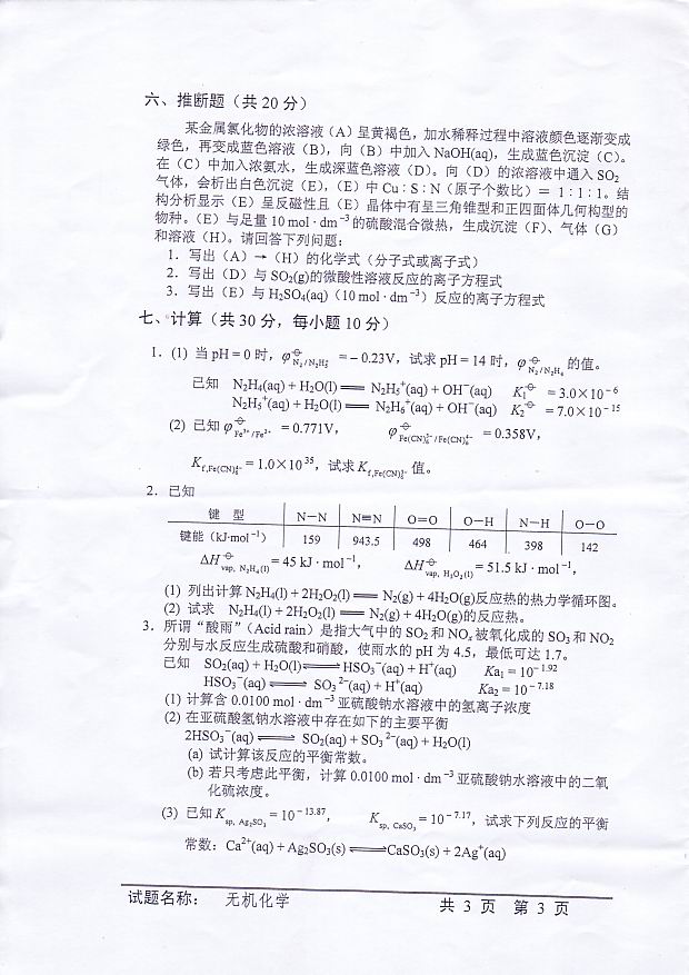 一、( 20分) 导出 用 T、v、k、β表示的表达式,并证明它对于van der Waals气体是负的。 其中为 为等温压缩系数 为体胀系数 u为内能,v为体积。 二、( 15分) 已知 C x 为广义坐标X保持恒定时系统的热容量,C F 为广义力F保持恒定时系统的热容量,试证明: 并对气体及受拉 ...