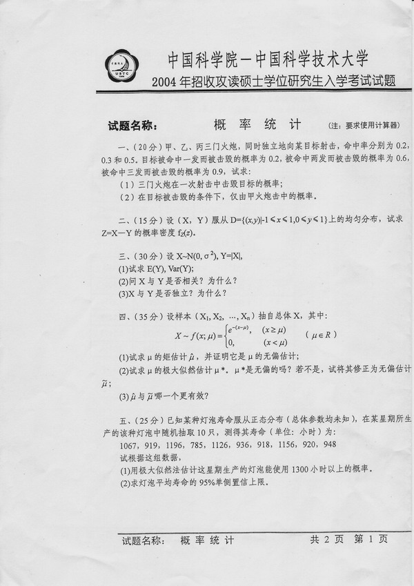 相关话题/考研真题 中国科学技术大学 统计 概率