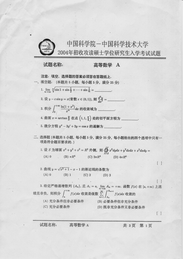 专业课考研经验 本站小编 FreeKaoyan 2018-01-22中国科学技术大学2004年考研真题-概率统计