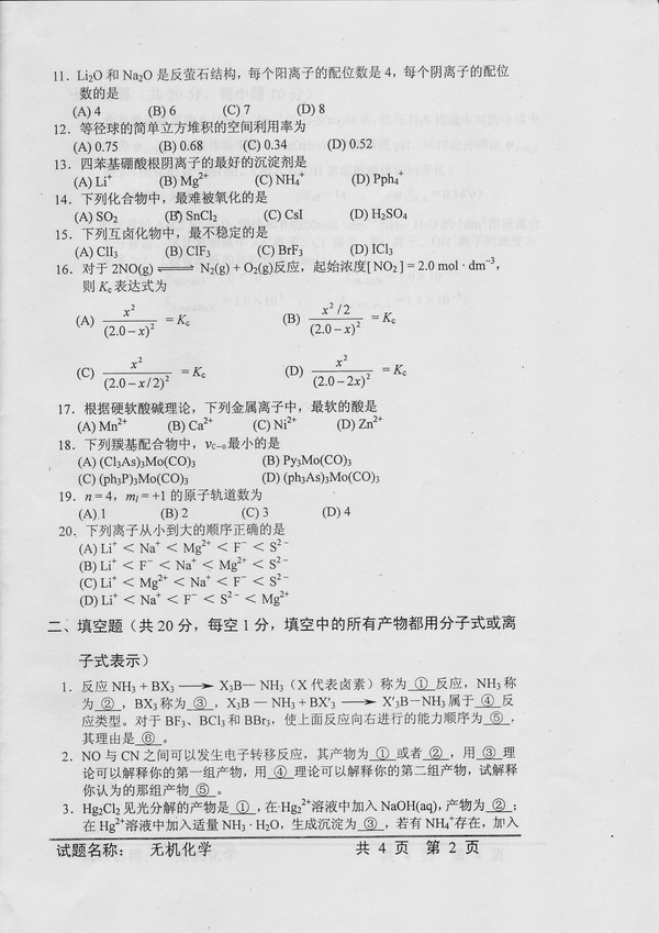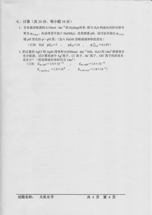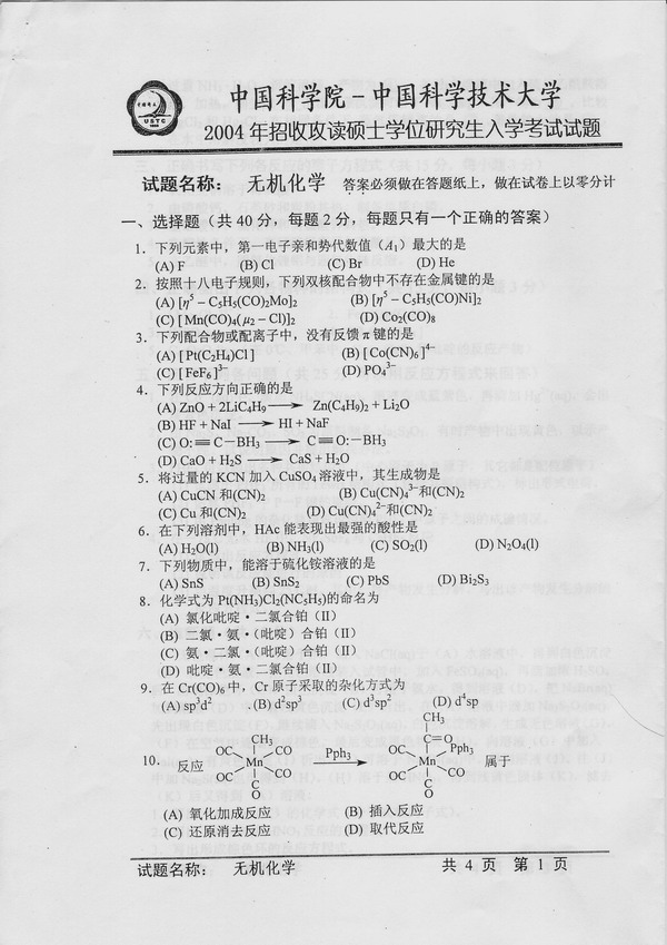 ...专业课考研经验 本站小编 FreeKaoyan 2018-01-22中国科学技术大学2004年考研真题-普通化学