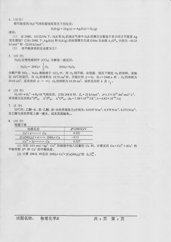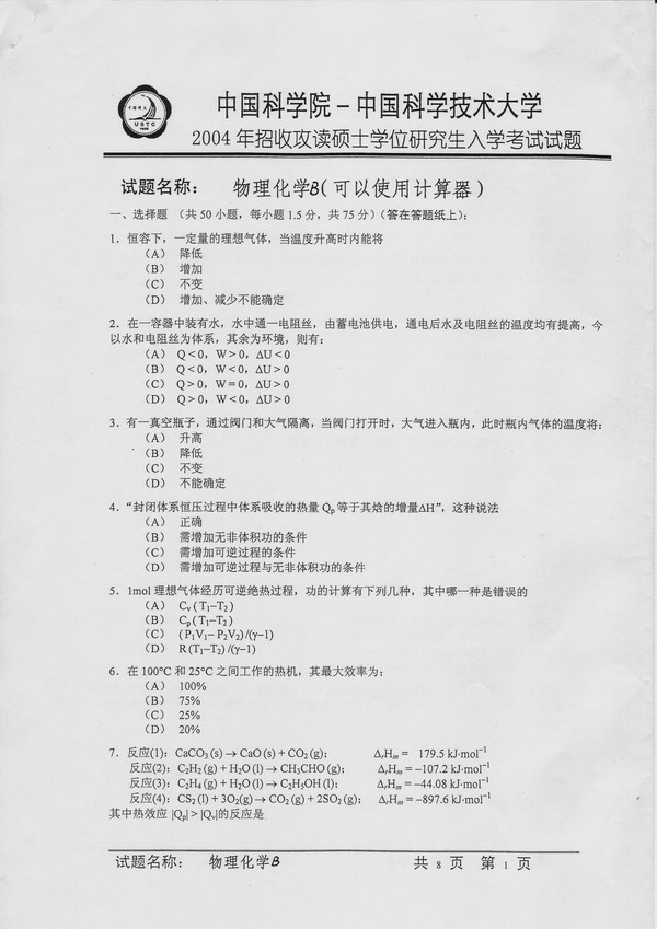 ...专业课考研经验 本站小编 FreeKaoyan 2018-01-22中国科学技术大学2004年考研真题-普通化学