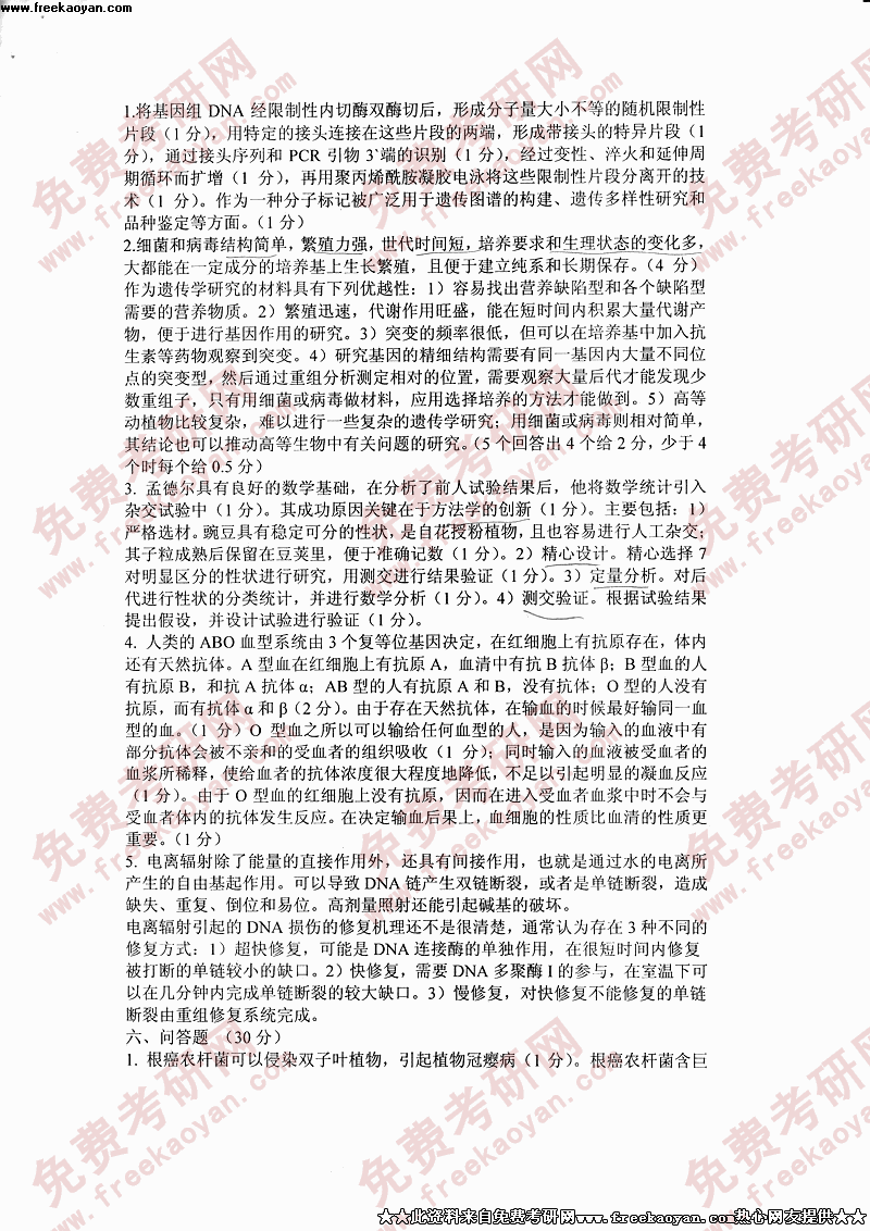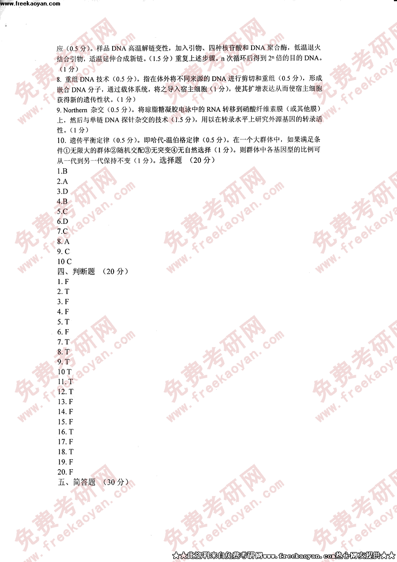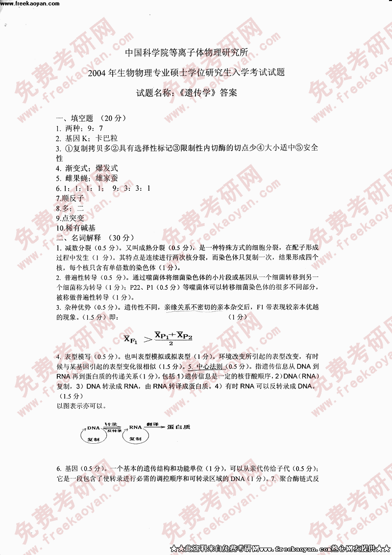 专业课考研经验 本站小编 FreeKaoyan 2018-01-22中国科学技术大学2004年考研真题-遗传学