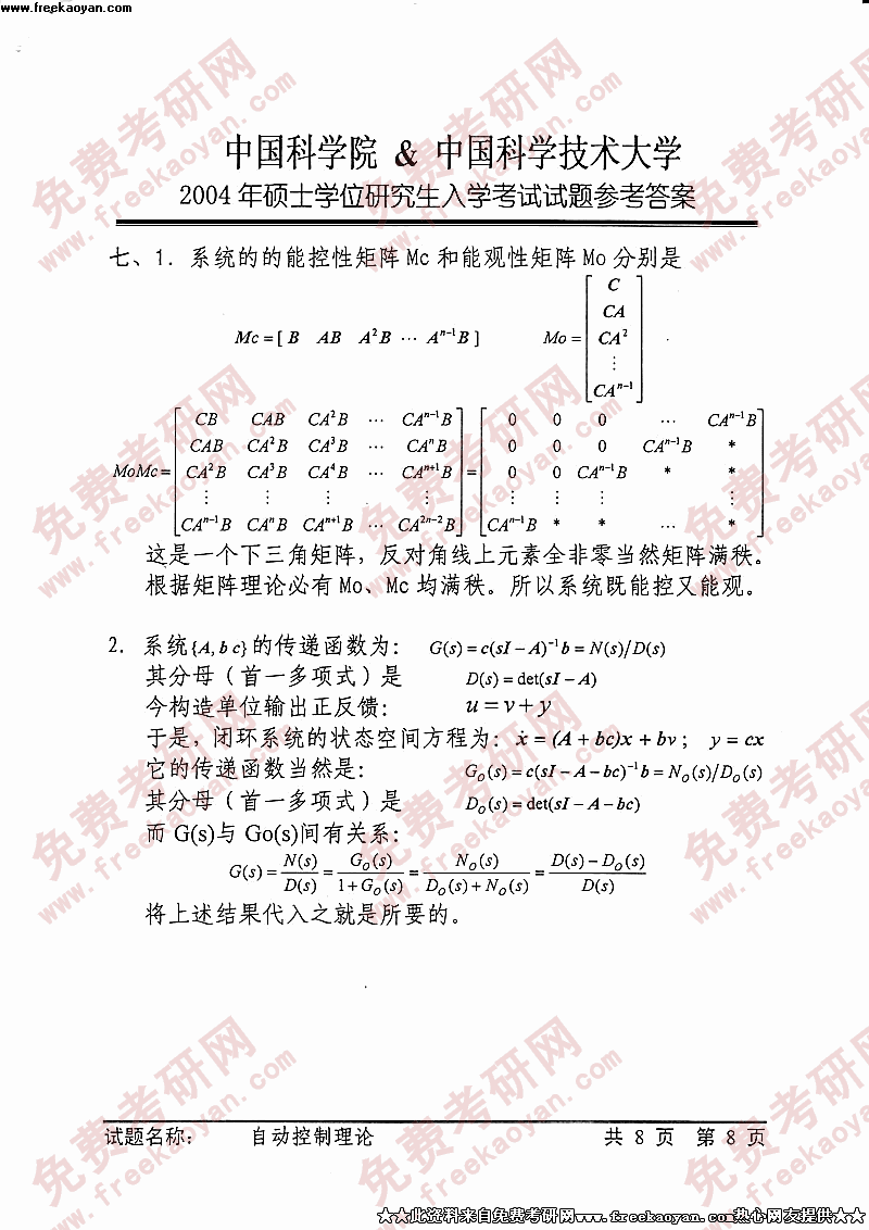 专业课考研经验 本站小编 FreeKaoyan 2018-01-22中国科学技术大学2004年考研真题-自动控制理论