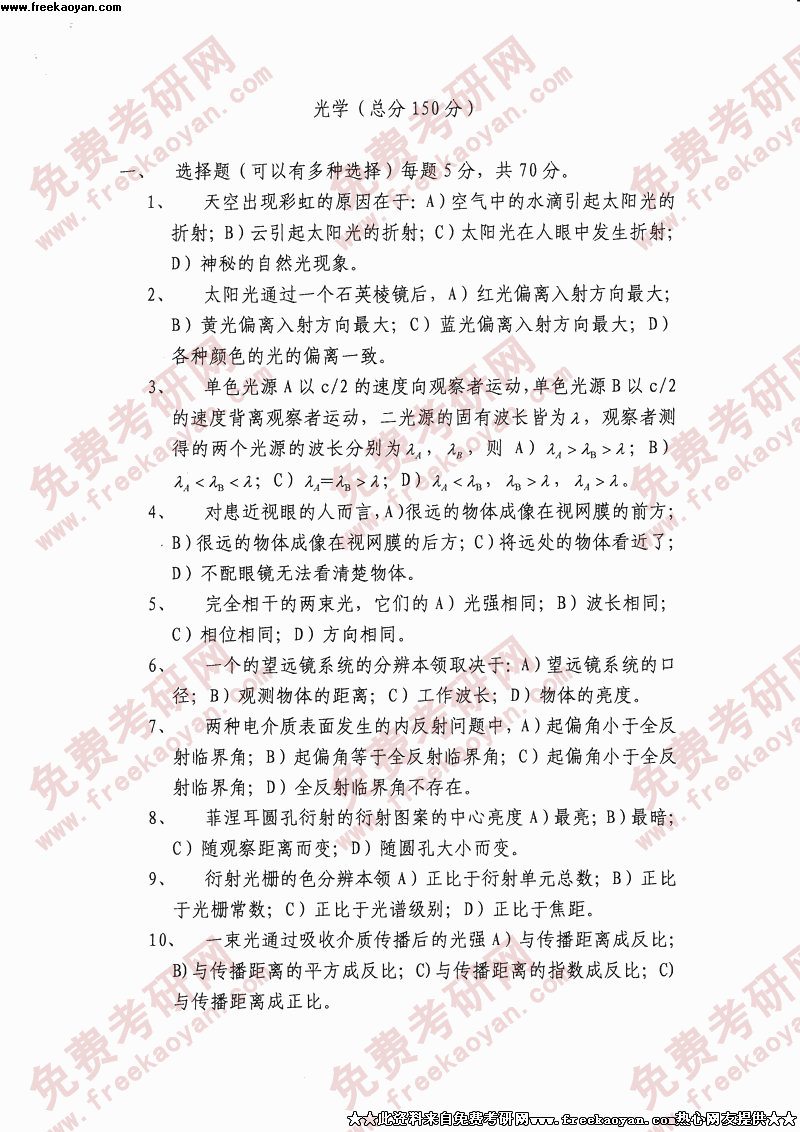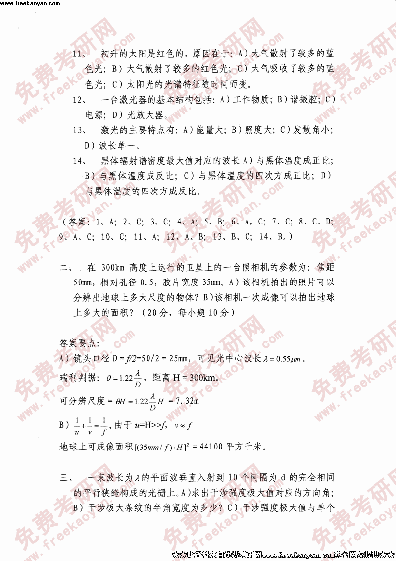 相关话题/考研真题 光学 中国科学技术大学 答案