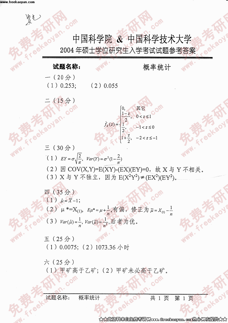 相关话题/概率 考研真题 中国科学技术大学 统计 答案