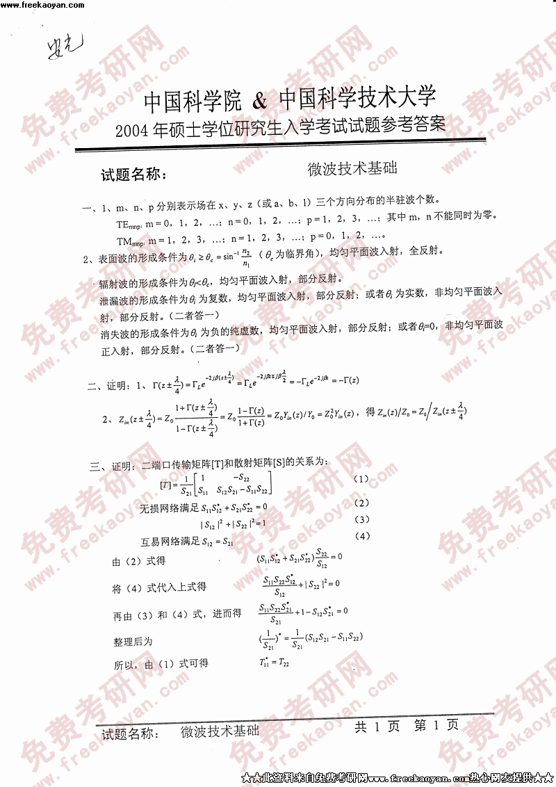 相关话题/微波 考研真题 技术 中国科学技术大学 基础