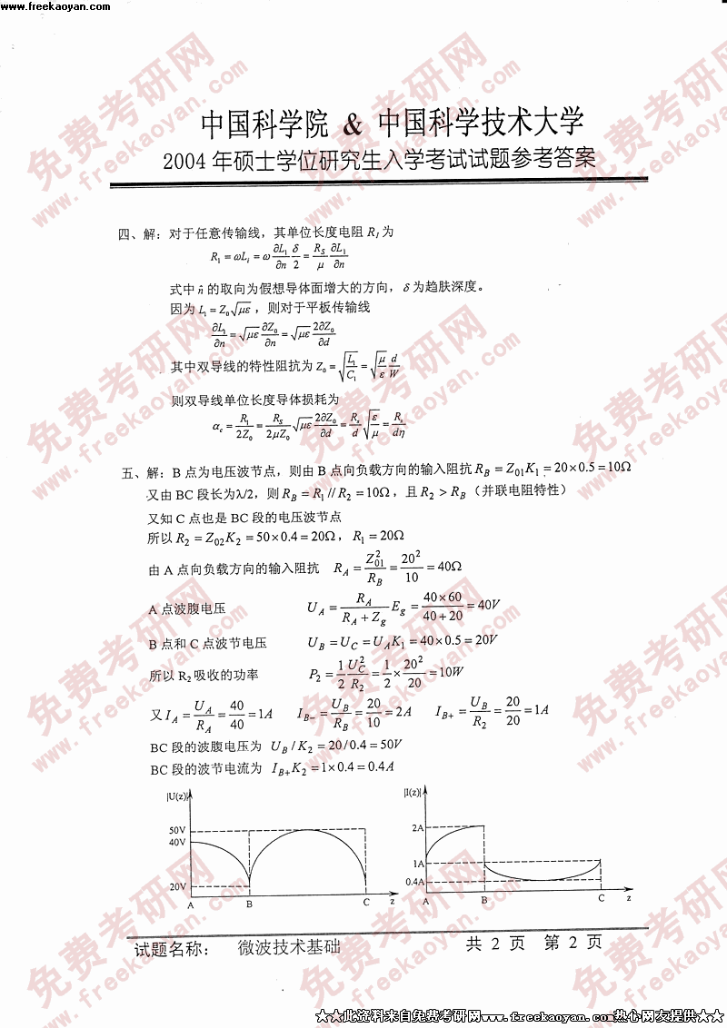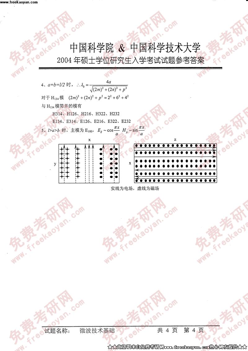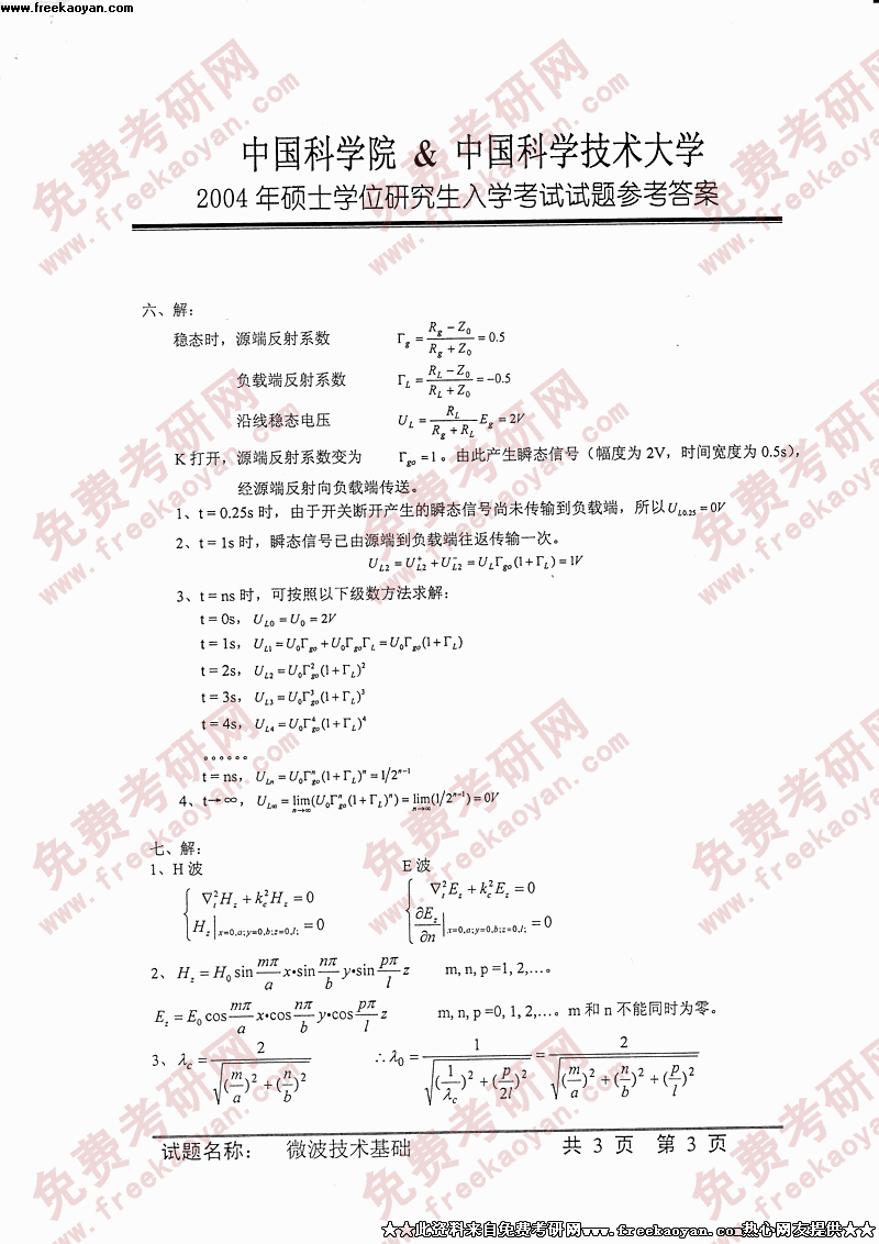 中国科学技术大学2004年考研真题-微波技术基础答案