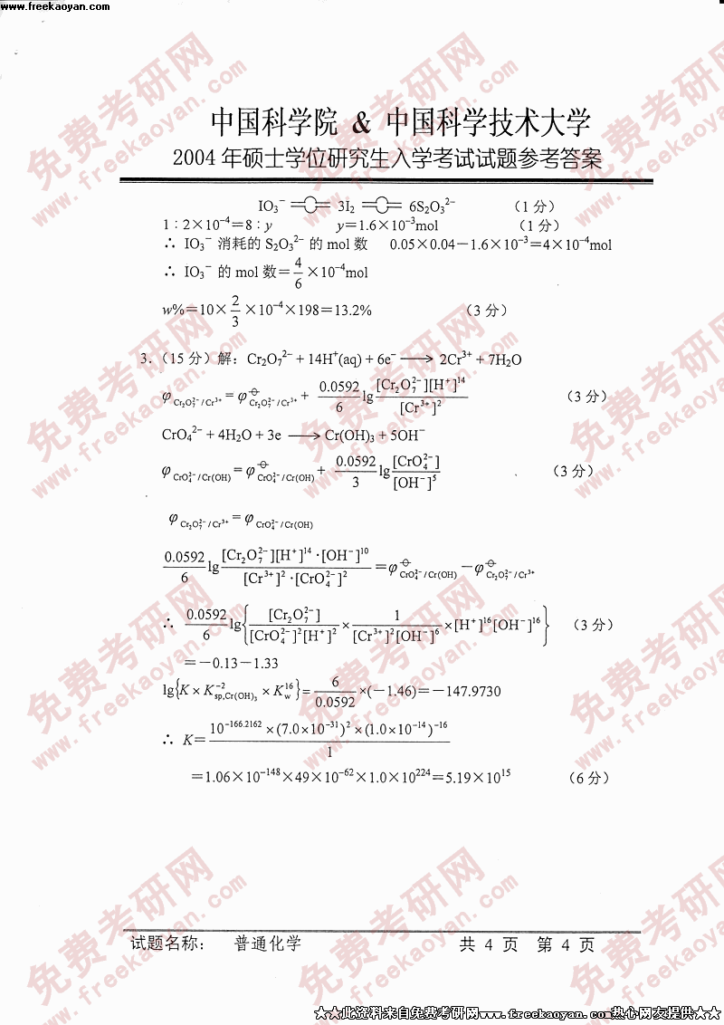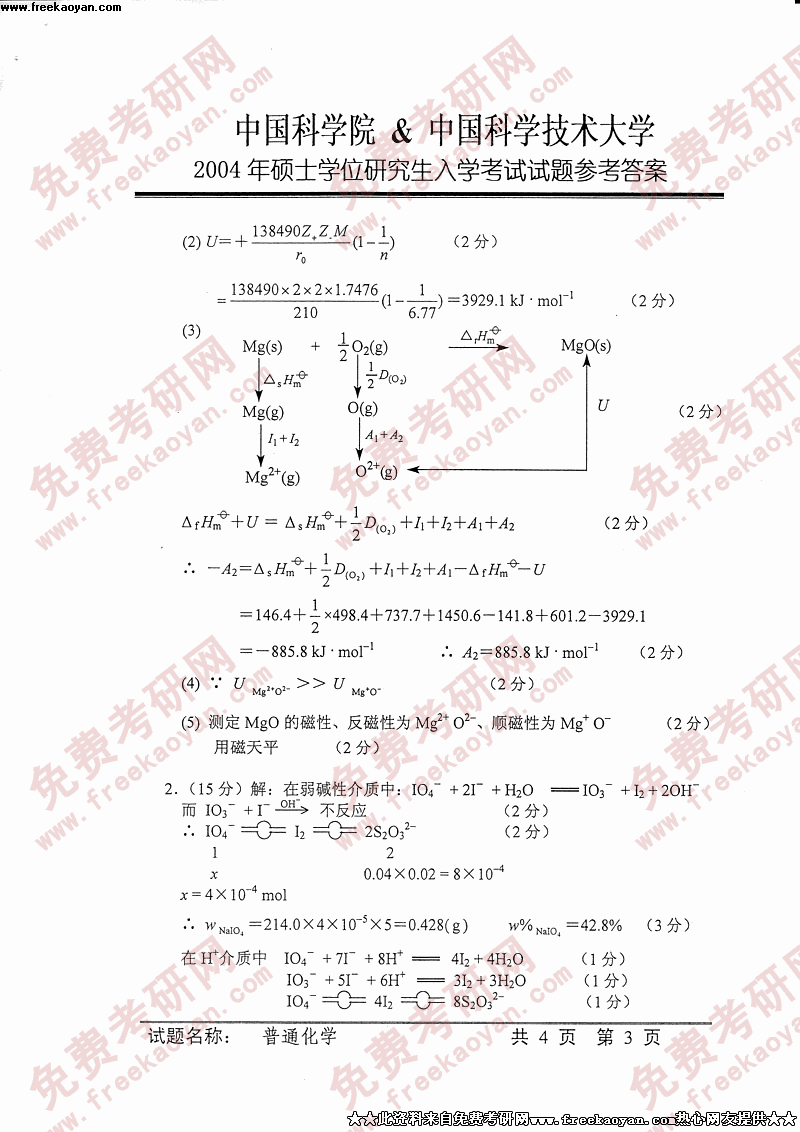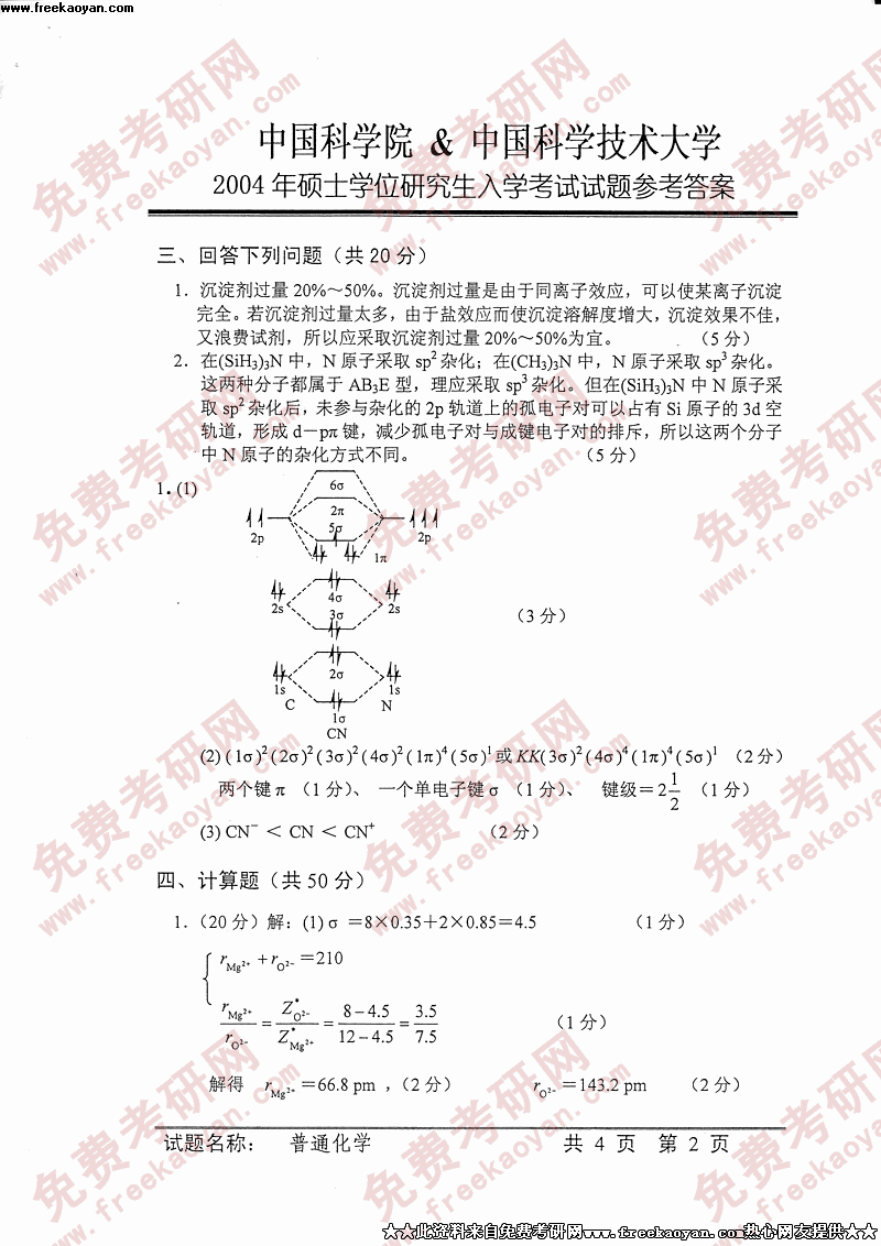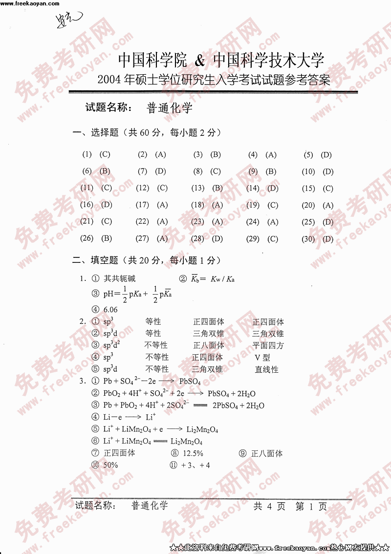 相关话题/考研真题 普通化学 中国科学技术大学 答案