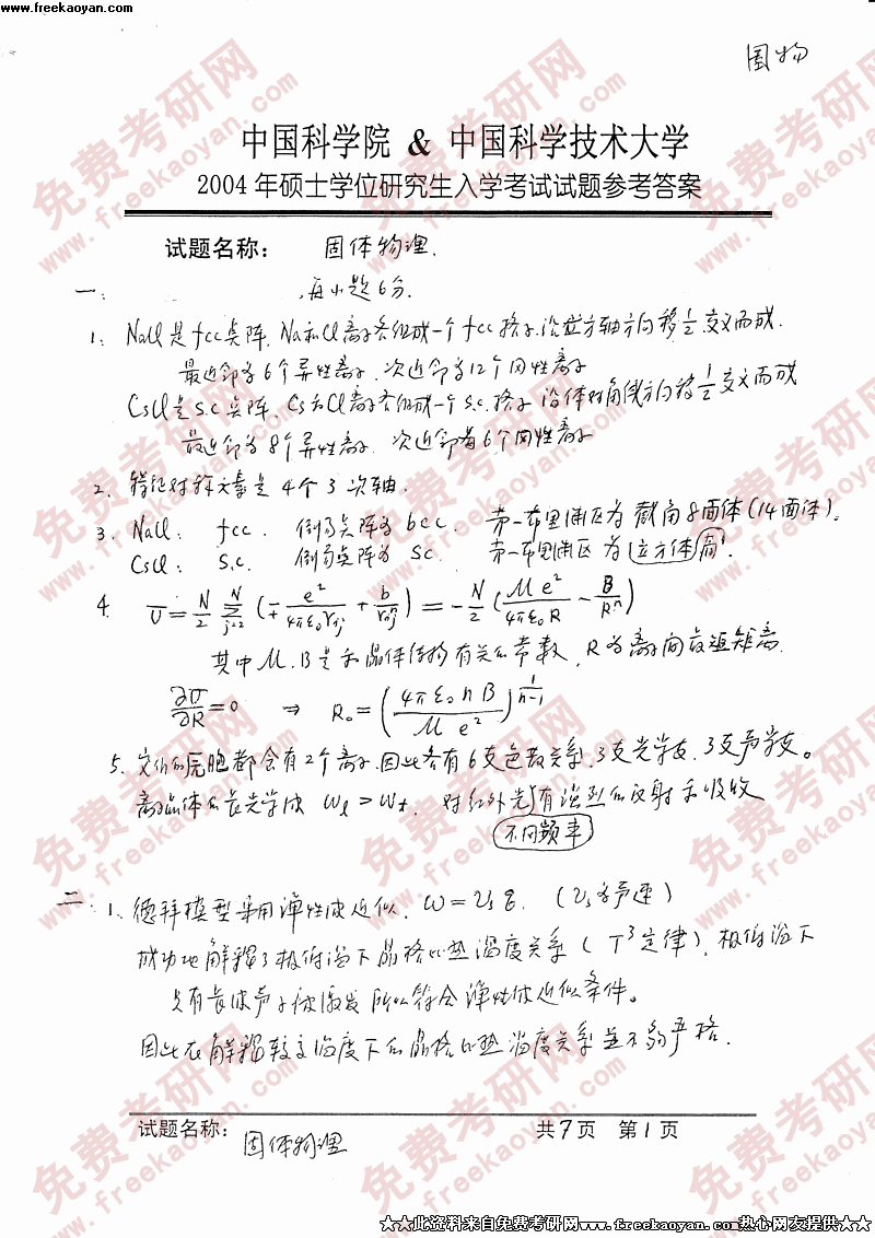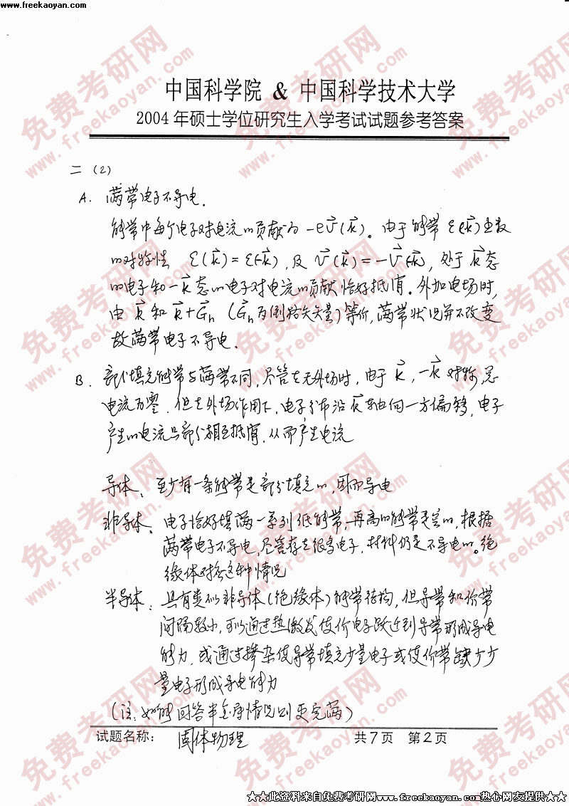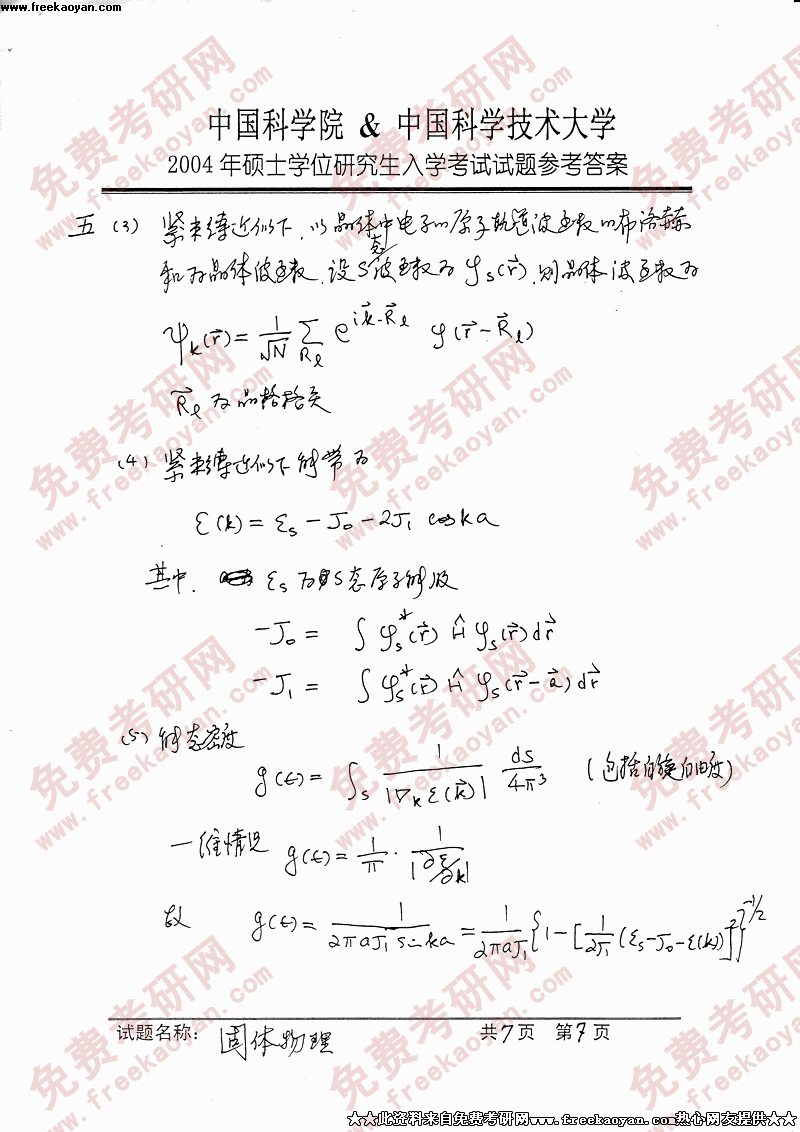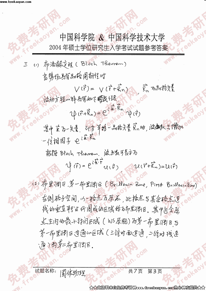 相关话题/考研真题 固体物理 中国科学技术大学 答案