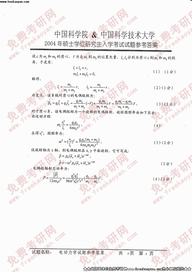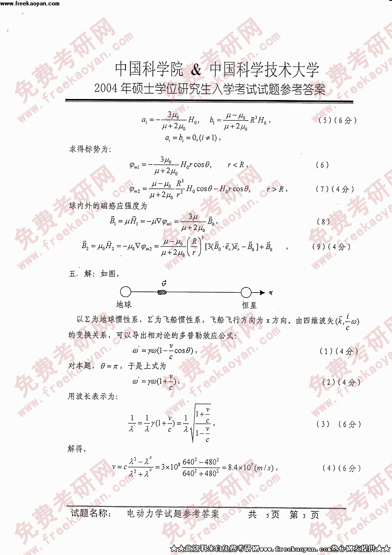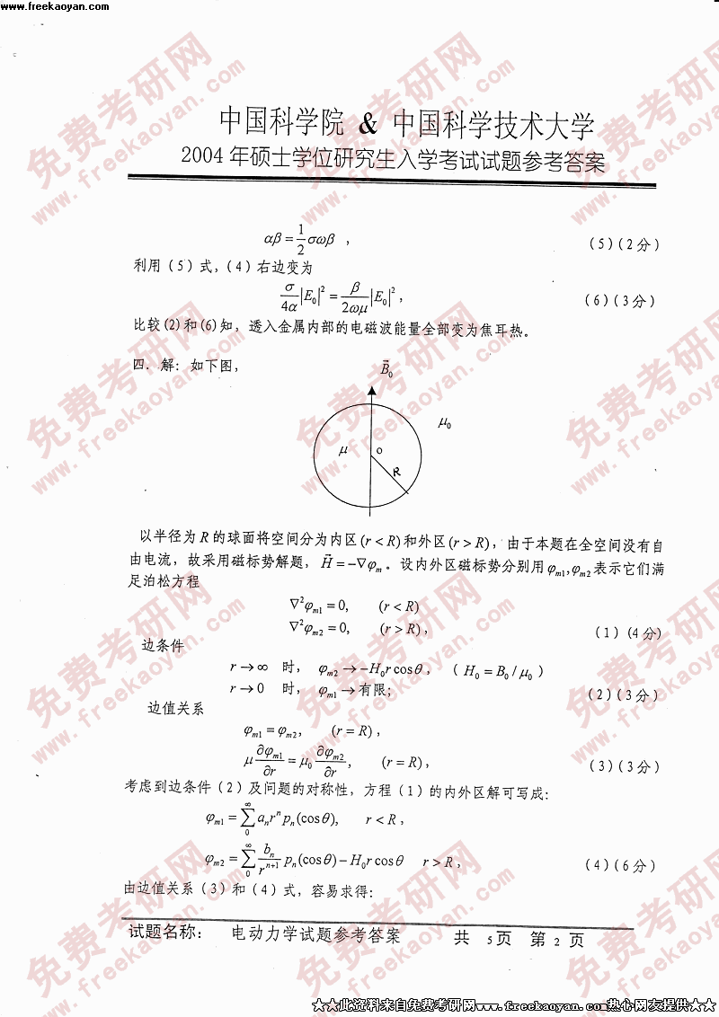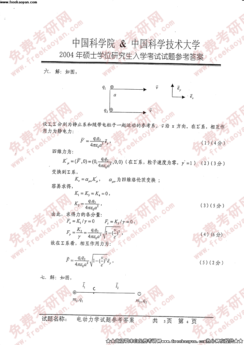 专业课考研经验 本站小编 FreeKaoyan 2018-01-22中国科学技术大学2004年考研真题-普通物理B答案