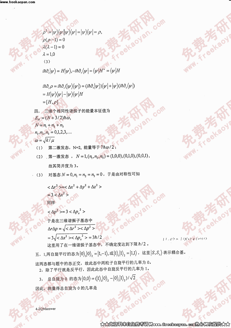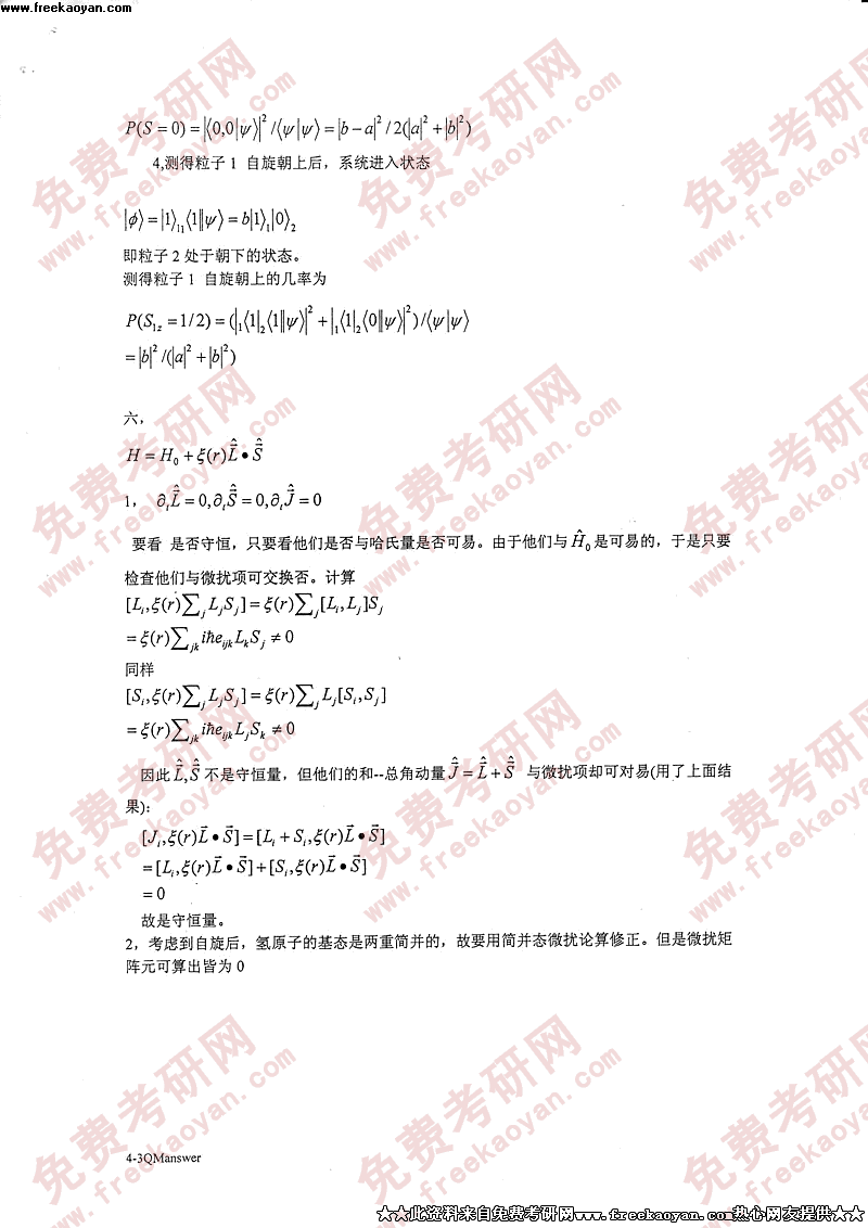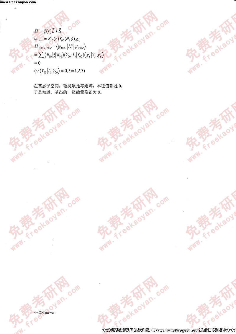 专业课考研经验 本站小编 FreeKaoyan 2018-01-22中国科学技术大学2004年考研真题-原子物理答案
