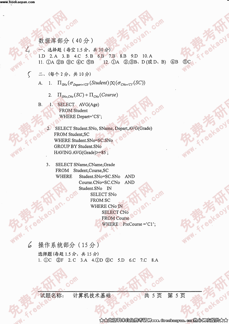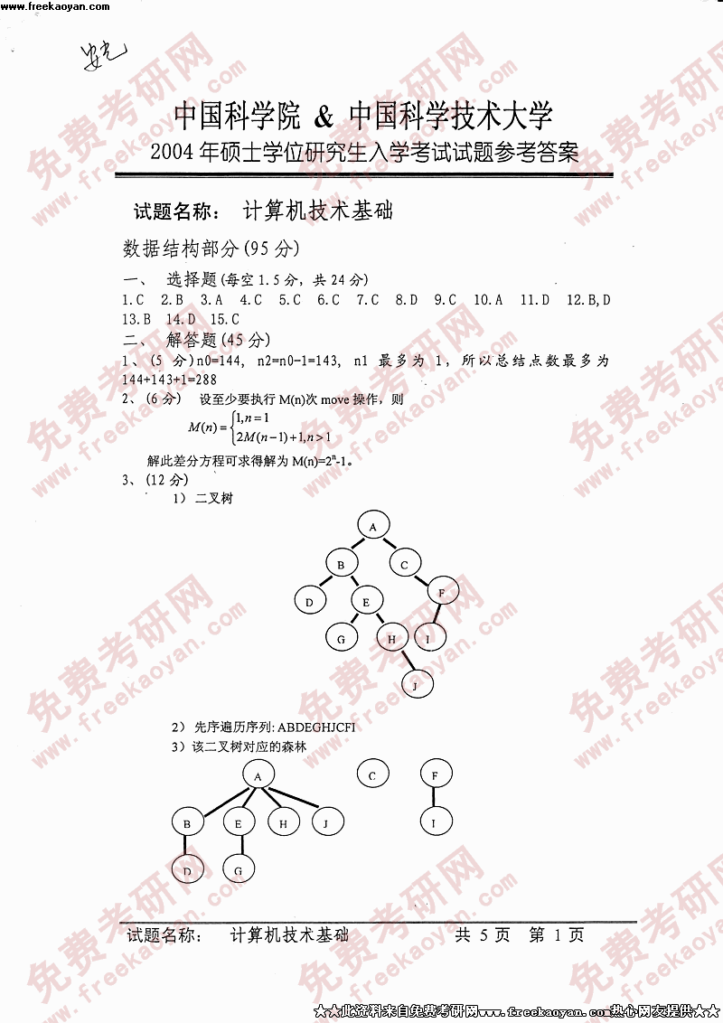 中国科学技术大学2004年考研真题-计算机技术基础答案