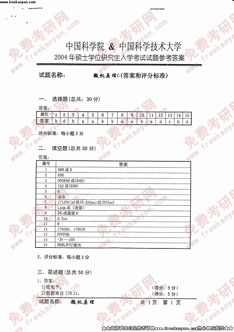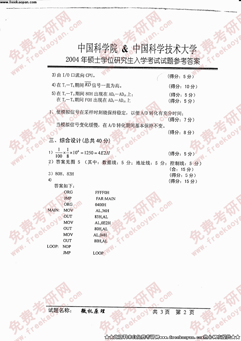 中国科学技术大学2004年考研真题-微机原理答案