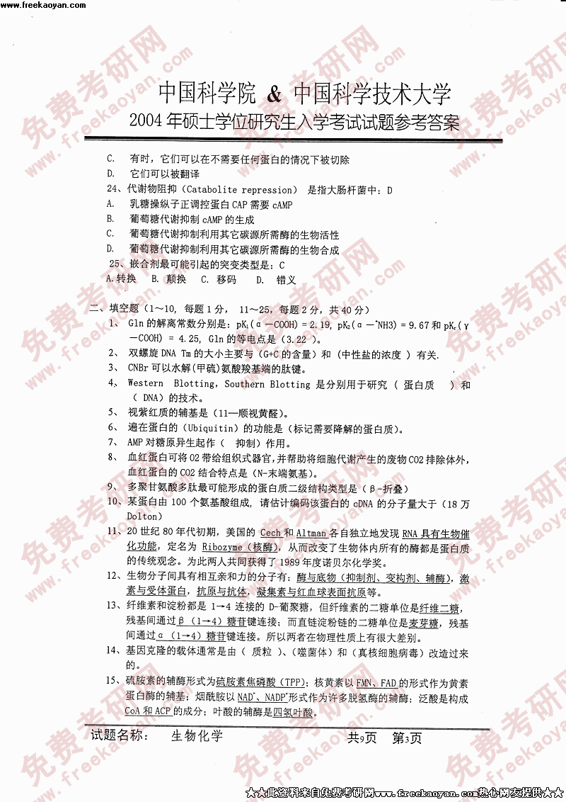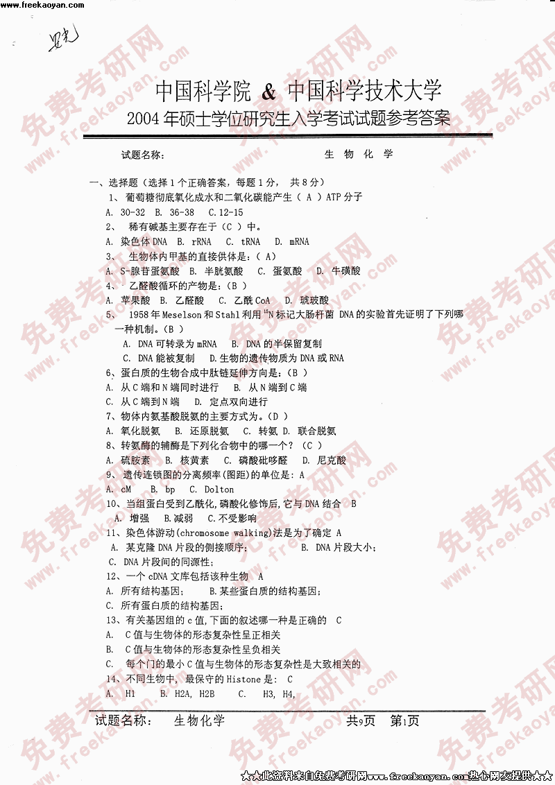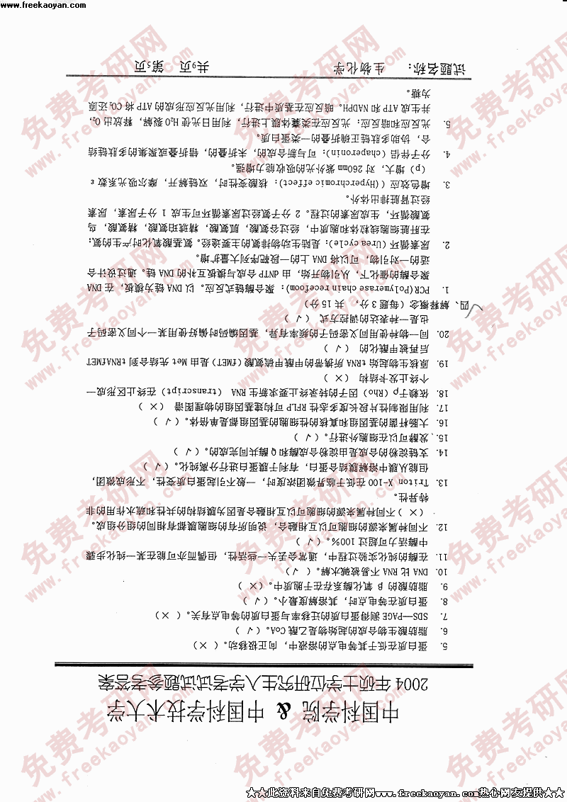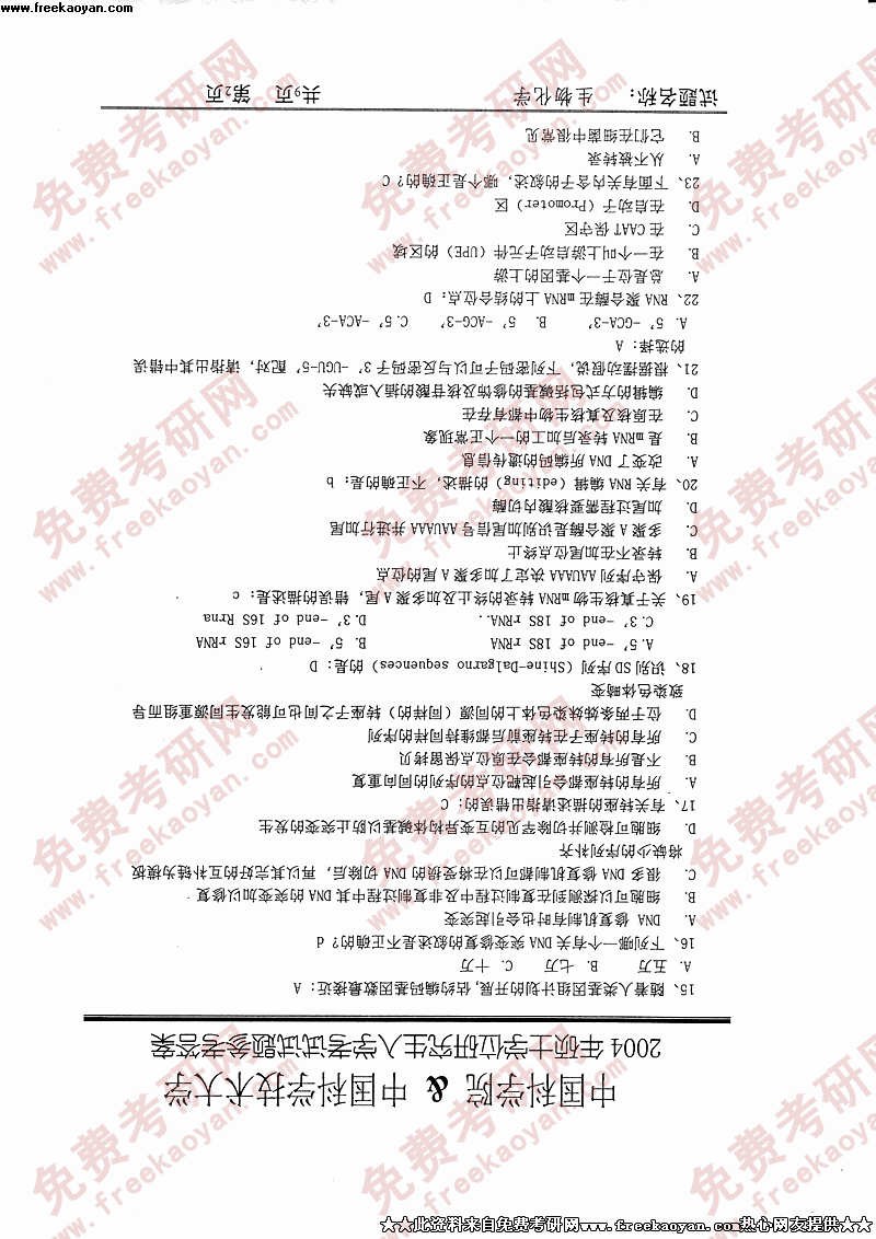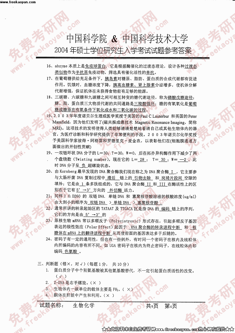 相关话题/考研真题 生物化学 中国科学技术大学 答案
