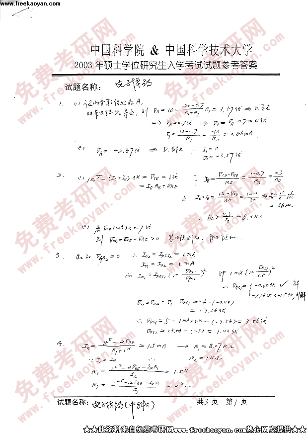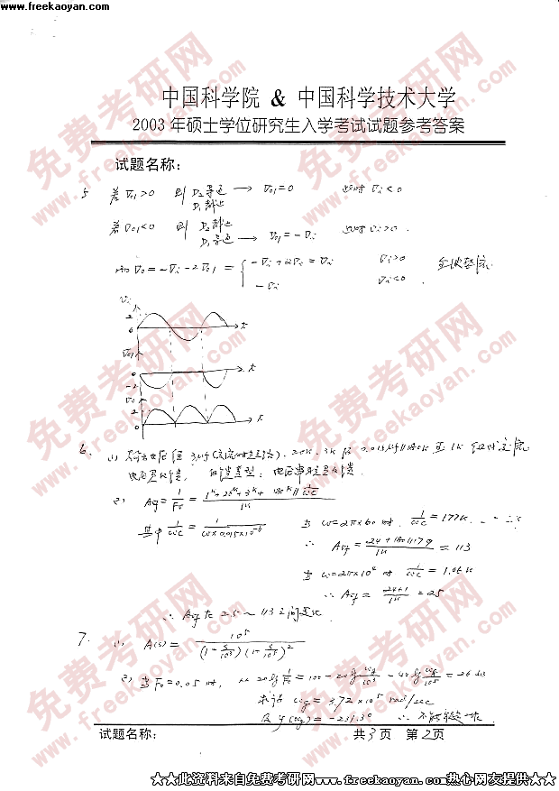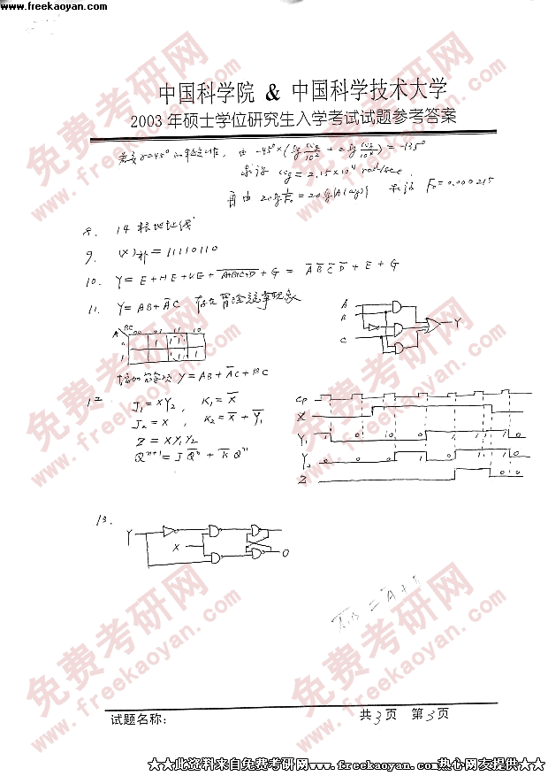 中国科学技术大学2003年考研真题-自动控制理论答案