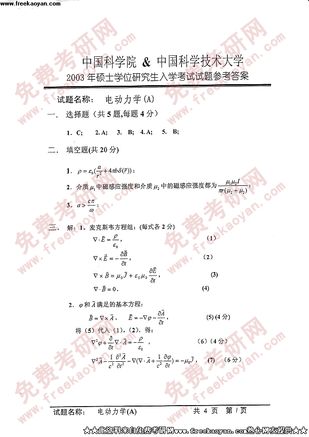 中国科学技术大学2004年考研真题-计算机技术基础答案