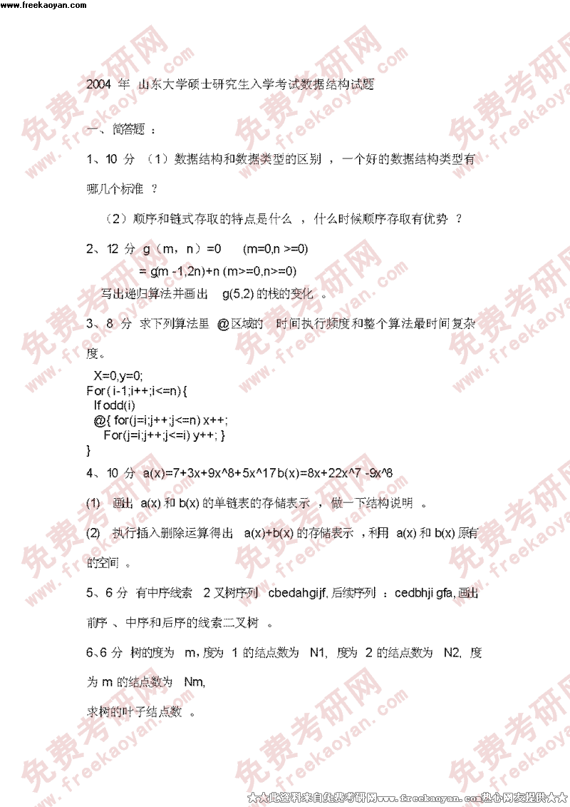 专业课考研经验 本站小编 FreeKaoyan 2018-01-22山 东 大 学 一九九九年招收硕士学位研究生入学考试试卷报考专业——宪法学、法理学——考试科目—综合券—一、名词解释(每小题3分,本题共15分)1、请求全竟和 2、连续犯 3、刑事诉讼 4、上诉不加型 5、诉讼代表人 二、简答题(每小题10分,本题共50分)1、民事法律关系客体的种类有哪些(需举说明 ...
