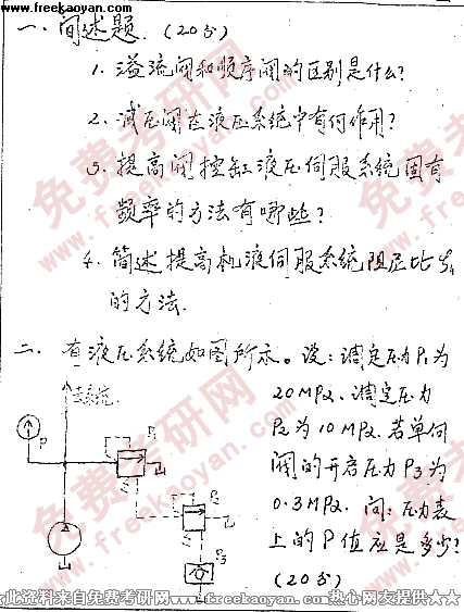 山东大学1999年考研真题-液压传动及液压伺候系统