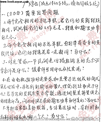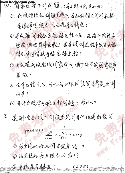 山东大学1998年考研真题-液压传动及液压伺候系统