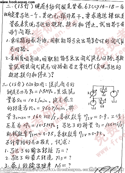 山东大学1999年考研真题-液压传动及液压伺候系统