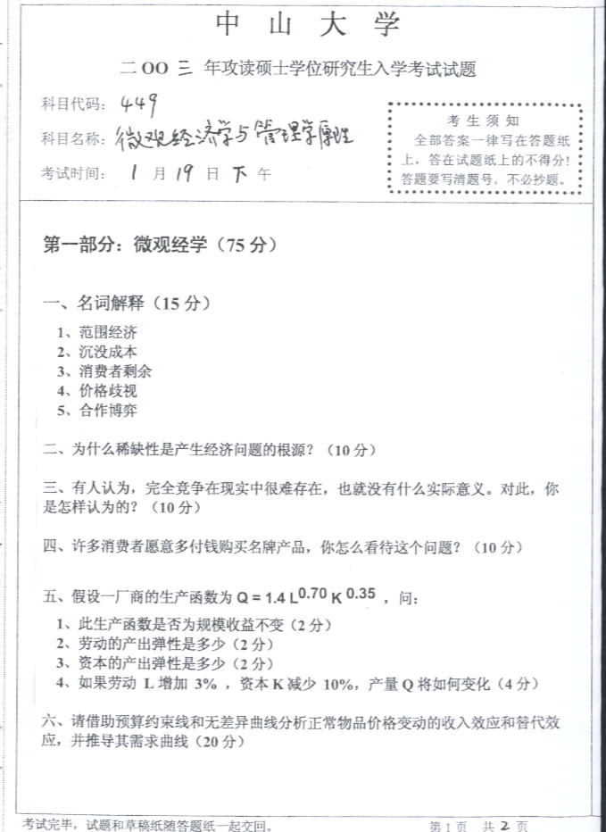 专业课考研经验 本站小编 FreeKaoyan 2018-01-22中山大学2001年攻读硕士学位研究生入学考试试题考试科目:经济地理学专业:人文地理学一、 名词解释(每题5分,共30分)1. 农业地域专业化2. 核心—边缘模式3. 区域比较优势4. 经济全球化5. 城市经济区6. 区位决策二、 简述题(每题10分,共30分)1. 试述交通运输和通讯技术的进步对经济 ...