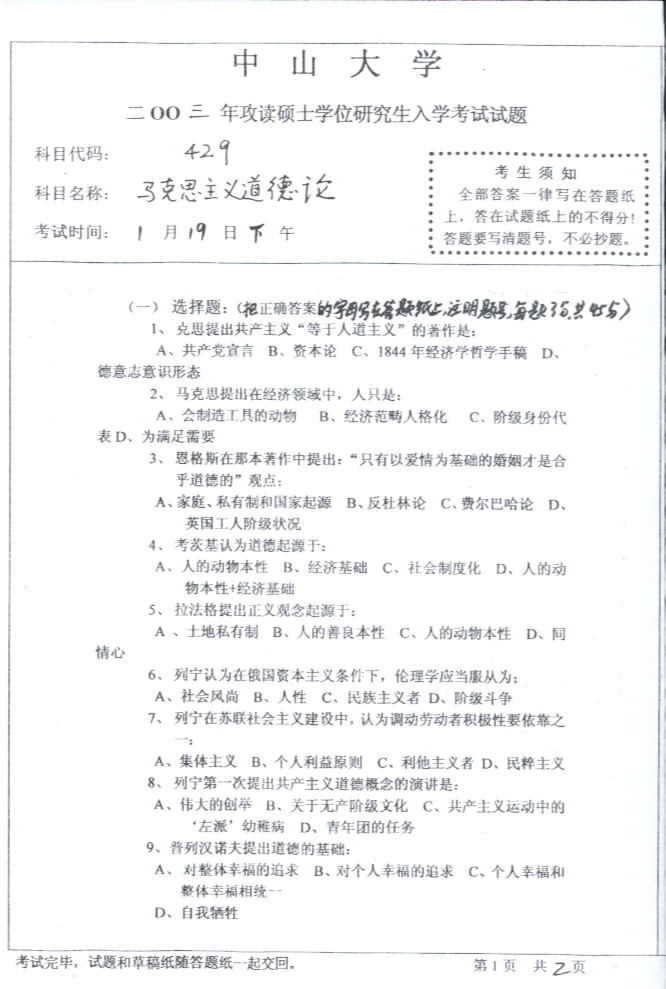 专业课考研经验 本站小编 FreeKaoyan 2018-01-22中山大学2003年考研真题-卫生综合